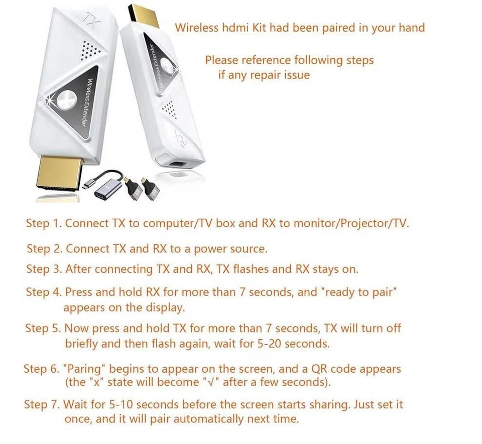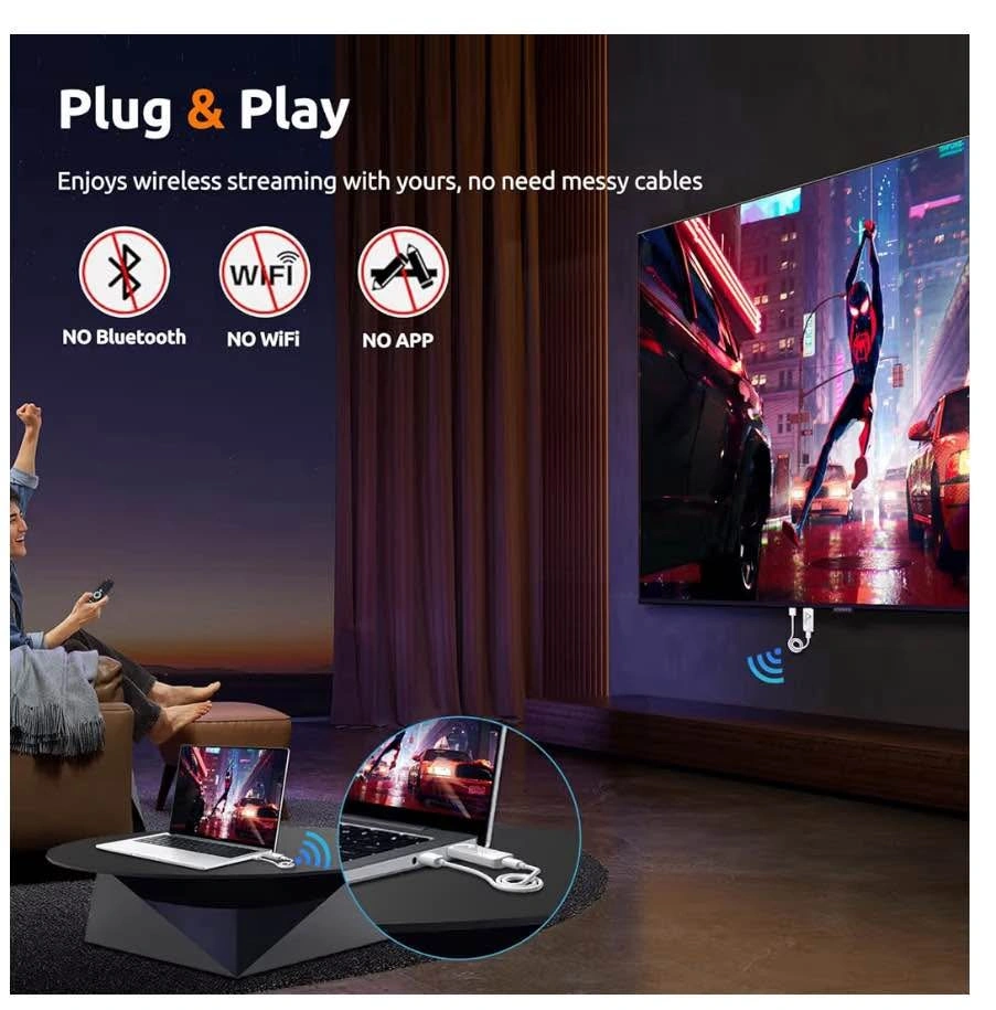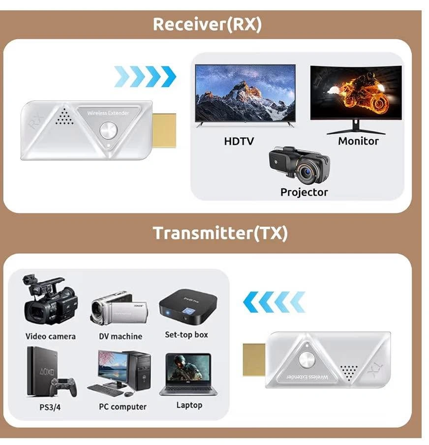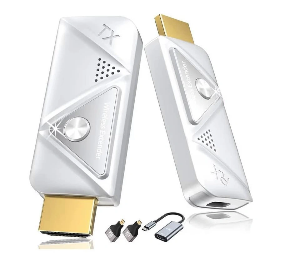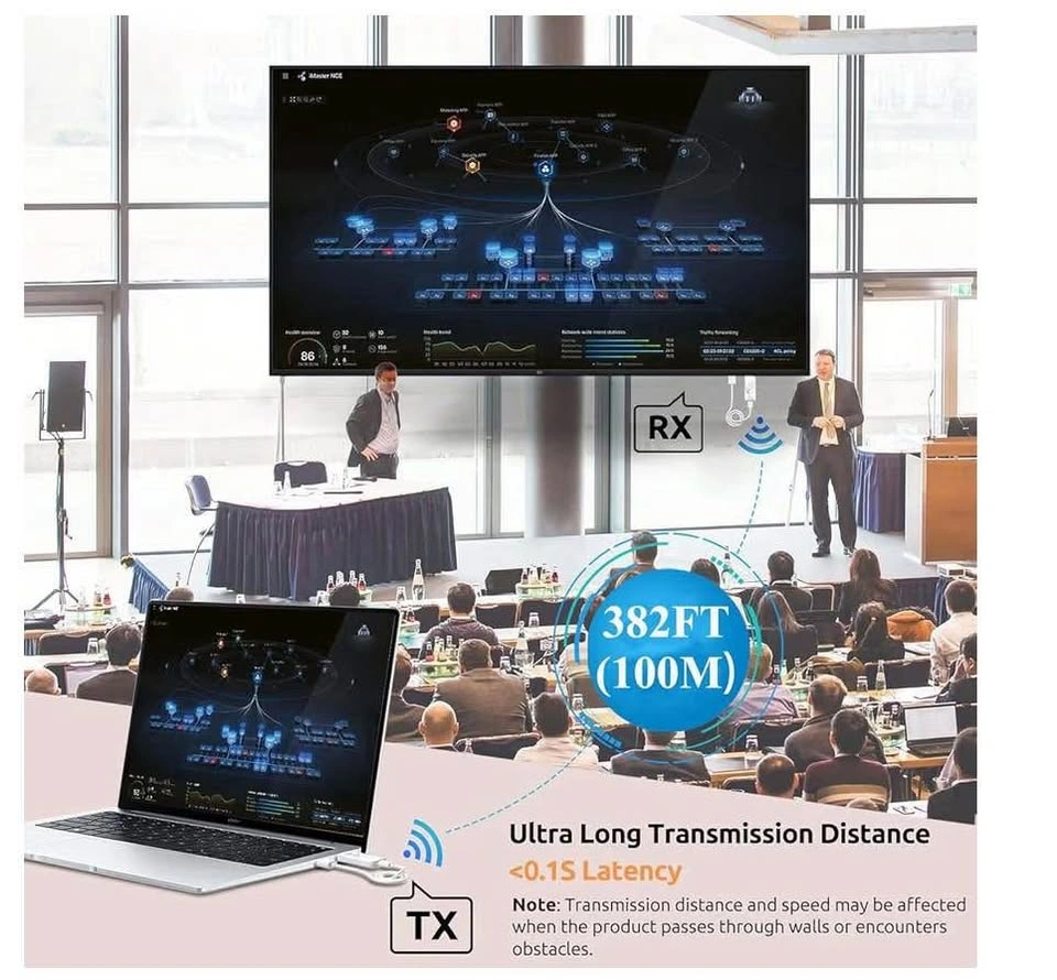 97Wireless HDMI Transmitter and Receiver 382FT/100M, 2.4G+5G Plug & Play Wireless HDMI Extender Kit 4K Decode for Video and Audio to Monitor from Laptop (1TX+1RX 382FT)