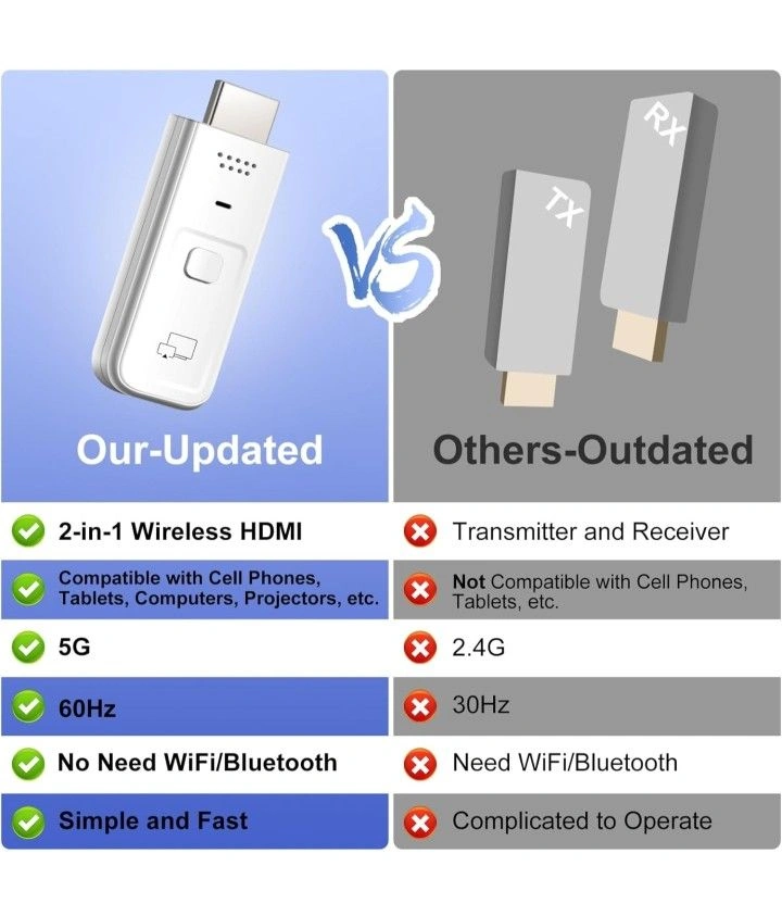 Wireless HDMI Transmitter and Receiver 2-in-1, 4K Decode 1080P Output Wireless HDMI, 2.4G&5G Display Adapter Plug & Play, Portable Streaming Video and Audio to Monitor from PC/DV/HDTV/Projector/TV Box