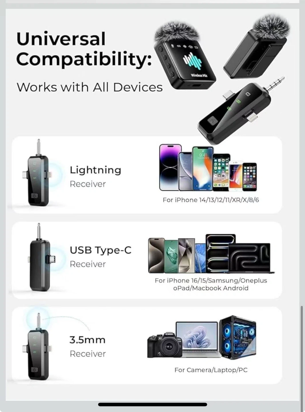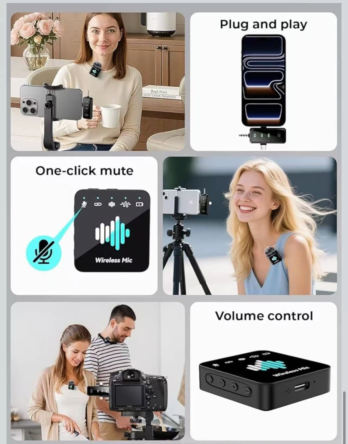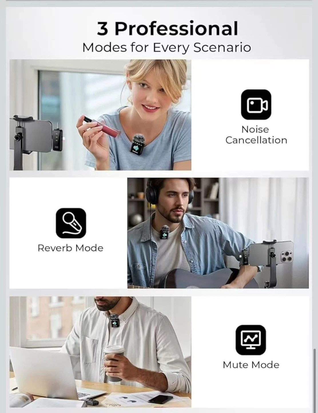 603-in-1 Microphone for iPhone: Wireless Lavalier Microphone for Camera & Android - Mini Mic - 328ft Transmission & 20H Battery Life - Vlogging with AI Noise Reduction-Whitish Black