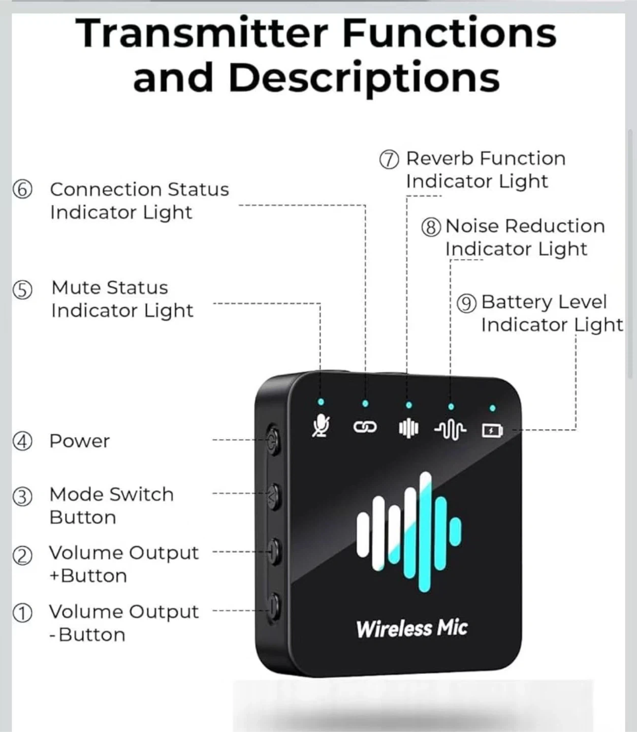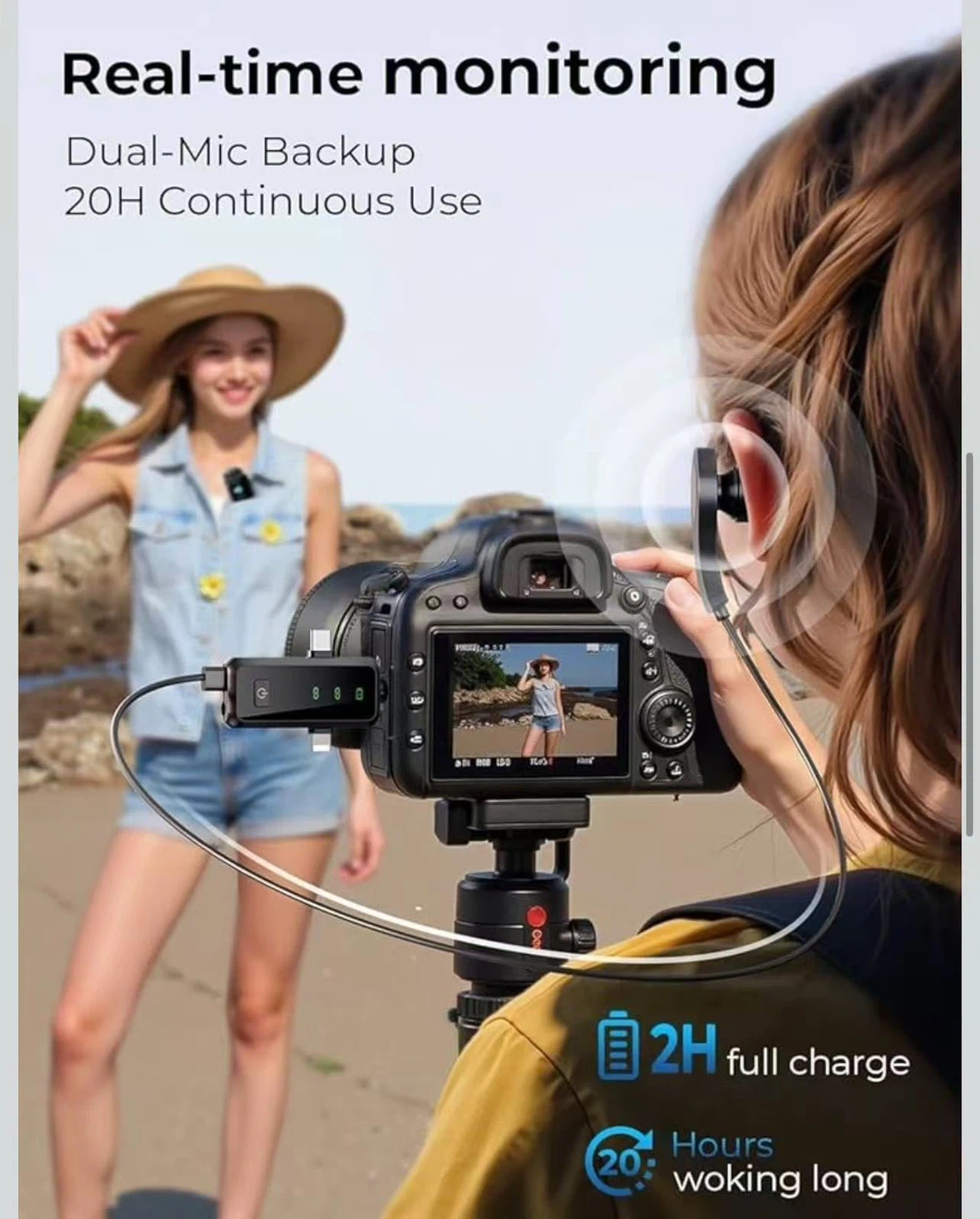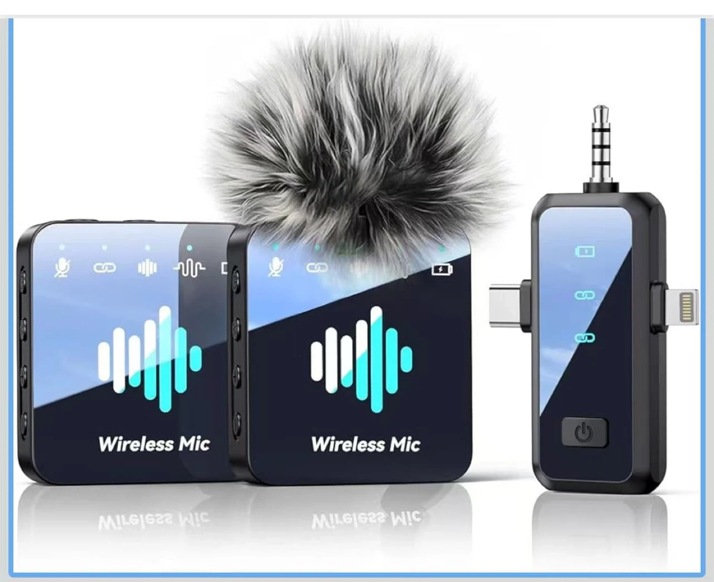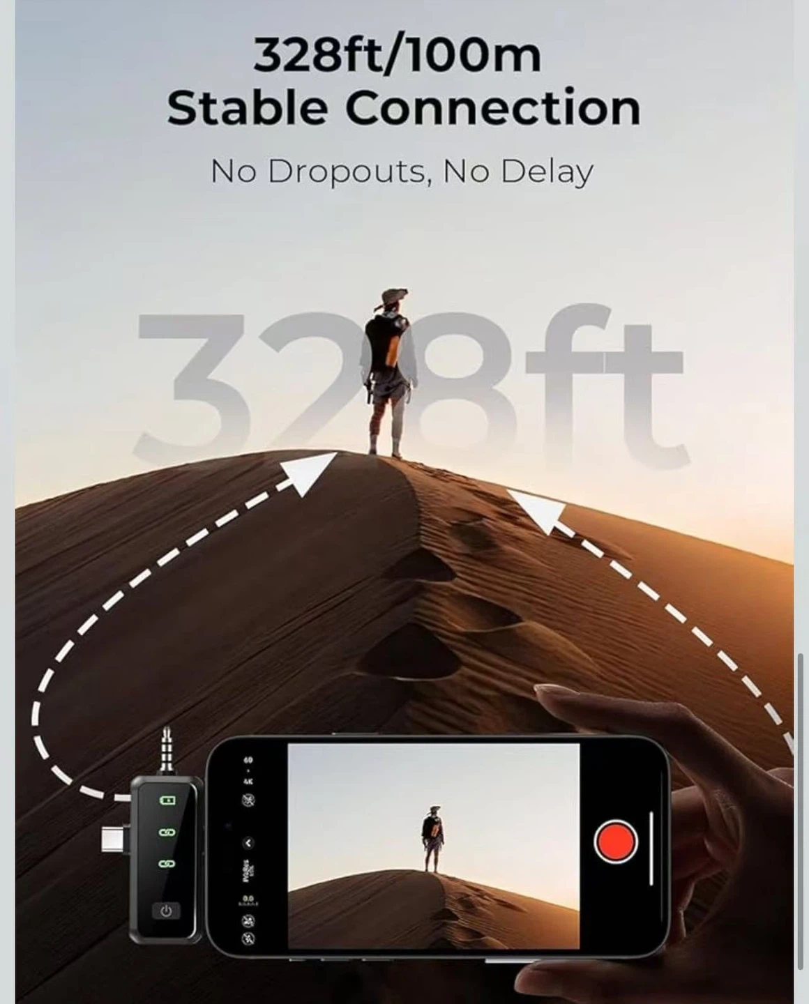 603-in-1 Microphone for iPhone: Wireless Lavalier Microphone for Camera & Android - Mini Mic - 328ft Transmission & 20H Battery Life - Vlogging with AI Noise Reduction-Whitish Black