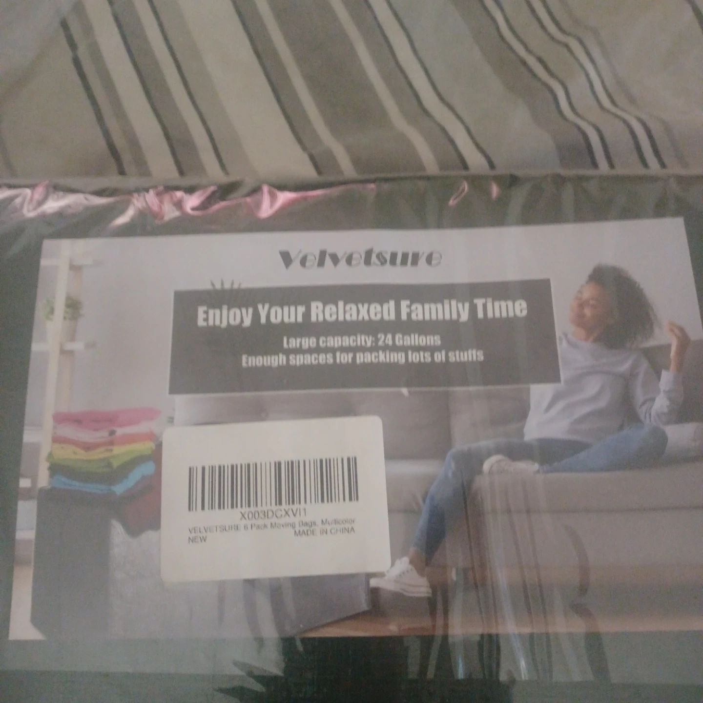 I'm selling a new set of Velvetsure 6-pack moving bags! They're multicolor and have a large capacity of 24 gallons, providing enough space for packing lots of stuff