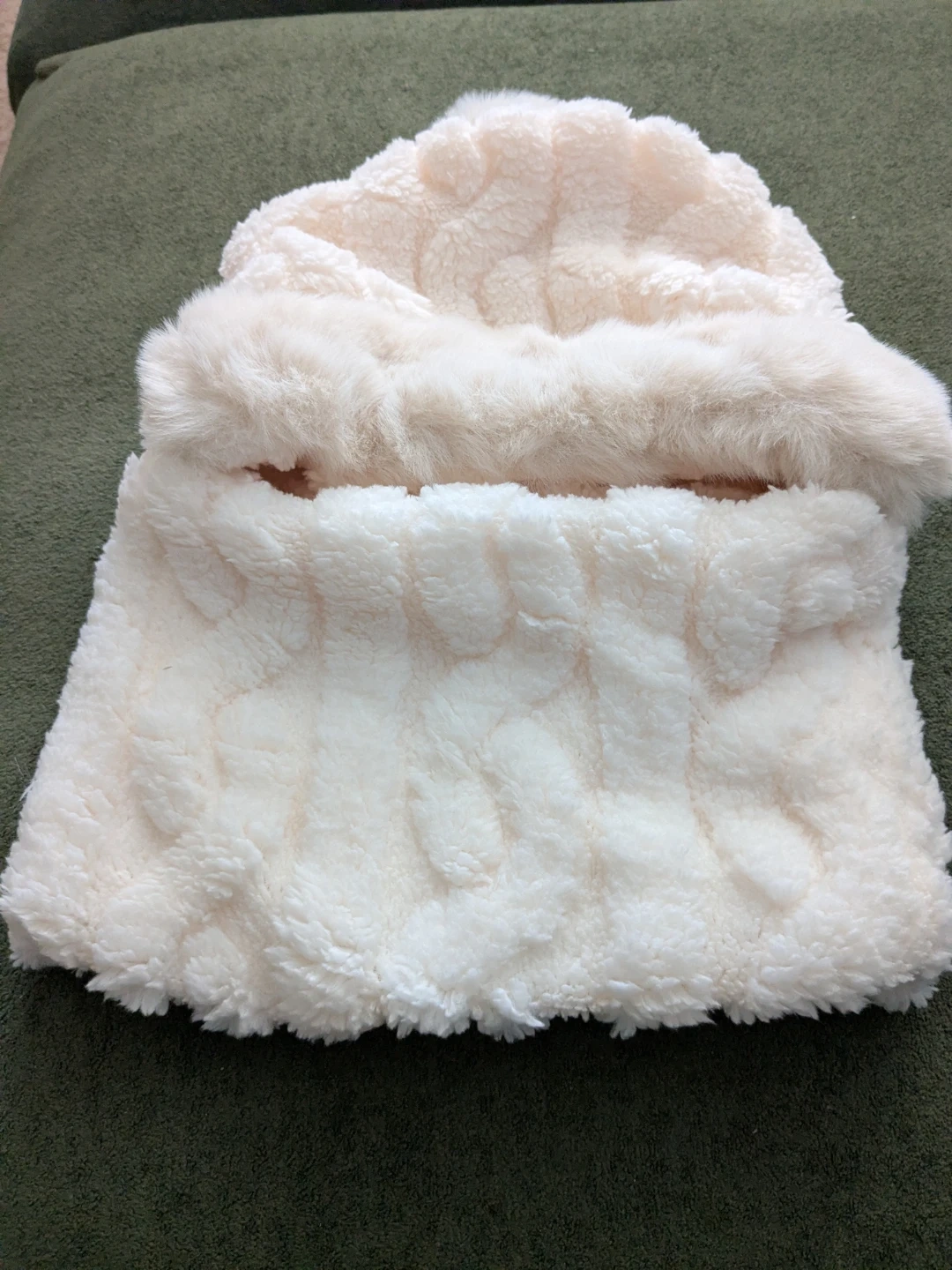 Cable Knit Neck Warmer (Snood/Gaiter): A thick, plush neck covering featuring a classic, beautiful chunky cable-knit pattern. This piece pulls up easily to cover the chin, mouth, and nose for wind protection, or can be worn down like a cozy cowl.