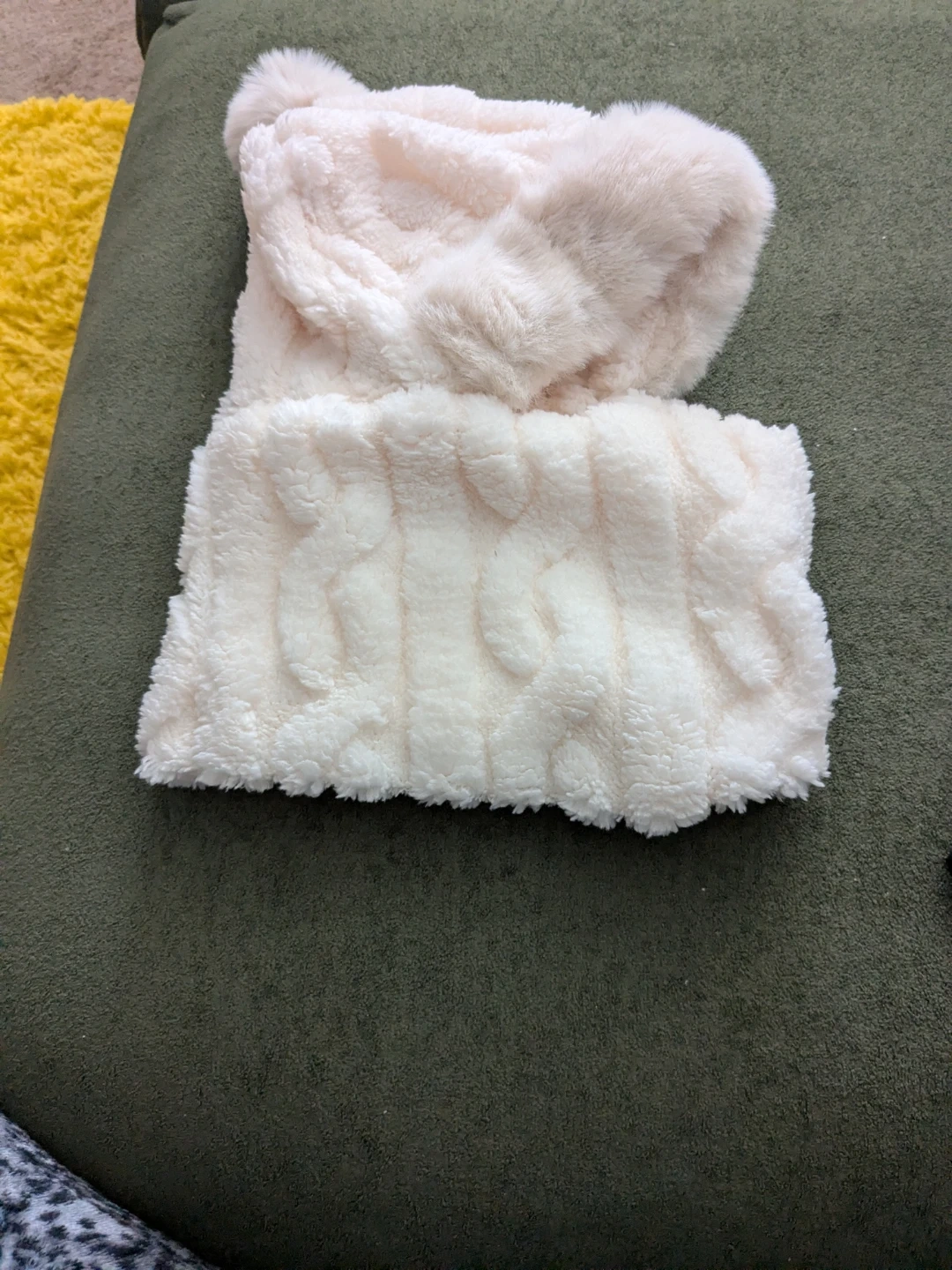 Dual Texture: The combination of the smooth faux fur and the textured cable knit creates a high-end, fashionable winter look.