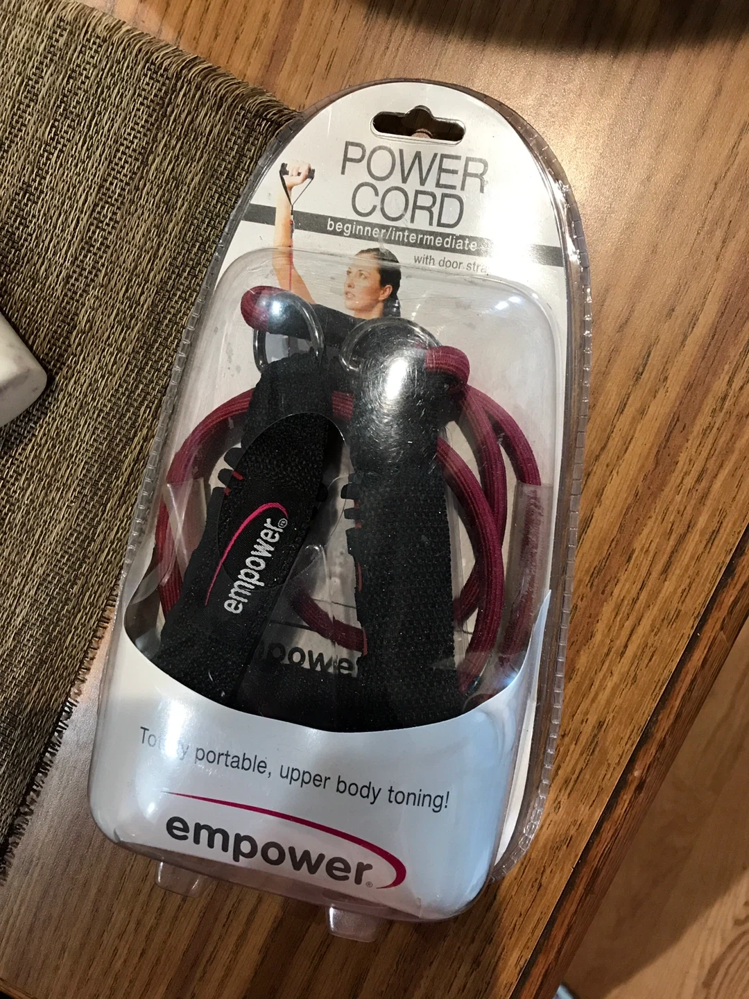 Get a full body workout at home or on the go with this Empower power cord! It's designed for beginner/intermediate use and includes a door strap attachment. The package includes: