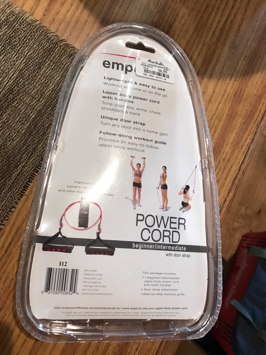 Get a full body workout at home or on the go with this Empower power cord! It's designed for beginner/intermediate use and includes a door strap attachment. The package includes: