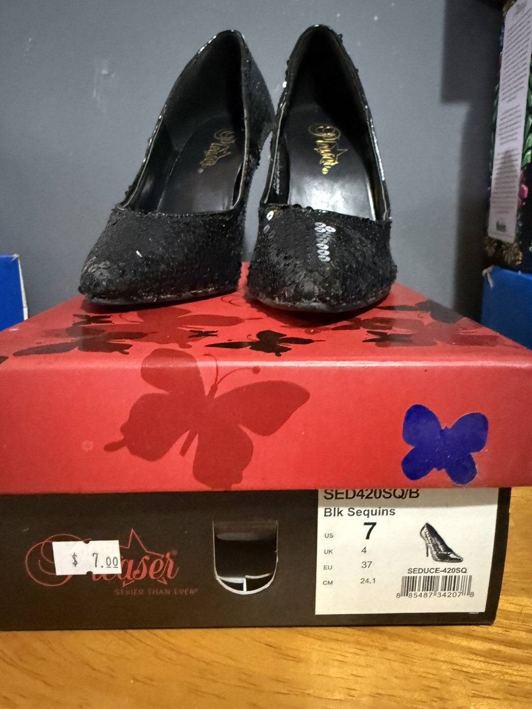 1 / 31 / 3Buy & SellPleaser Black Sequin Heels - Size 7Pleaser Black Sequin Heels - Size 7$30Black sequin heels. Size 7. Pointed toe. Stiletto heel. Excellent for a night out.ConditionLike newSize7BrandPleaserWHERE TO MEETCiceroView MapSELLERverifiedSandraWest Town931 review0 chats·0 favorites·8 viewsSEND CHAT TO SELLERHi Sandra! I’m interested in your listing.Hi Sandra! I’m interested in your listing.Get the Karrot app to chatSign In to chat