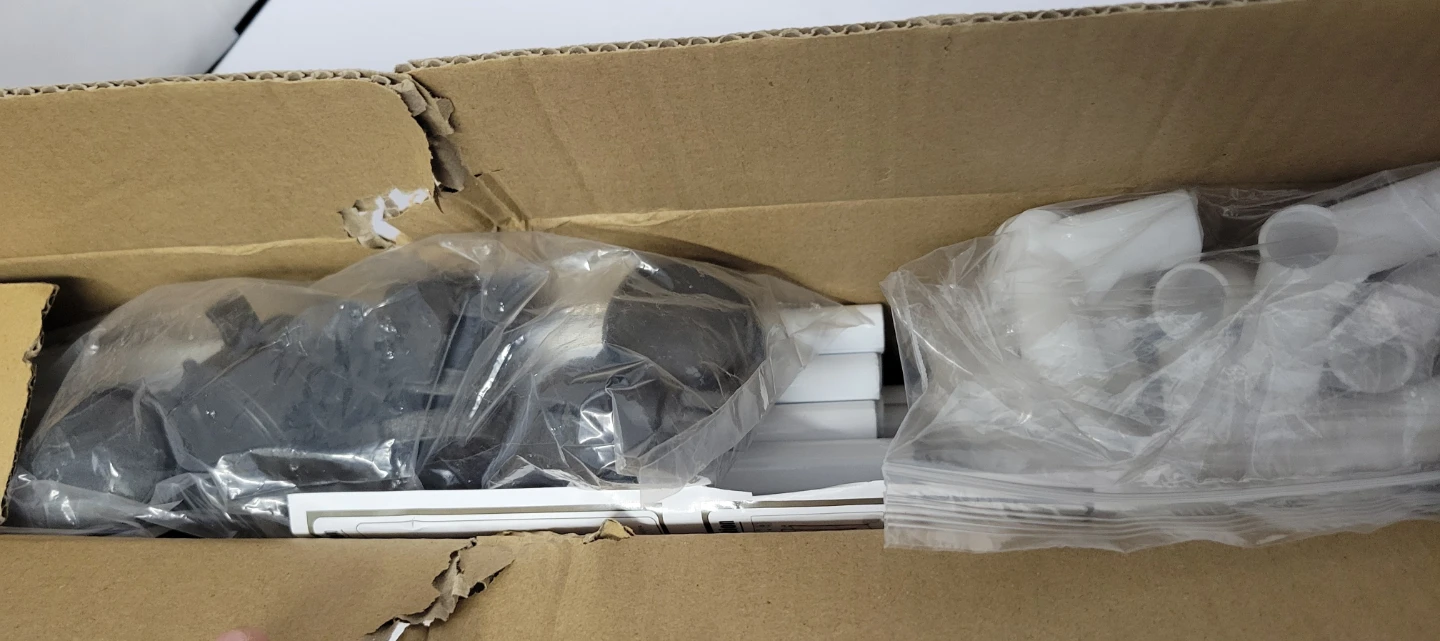 I'm selling a portable garment rack. It's white and has wheels, making it easy to move around your space. The rack comes in its original box with all the necessary components included