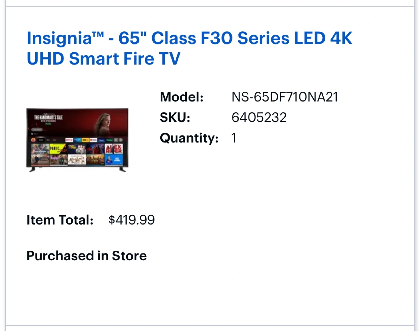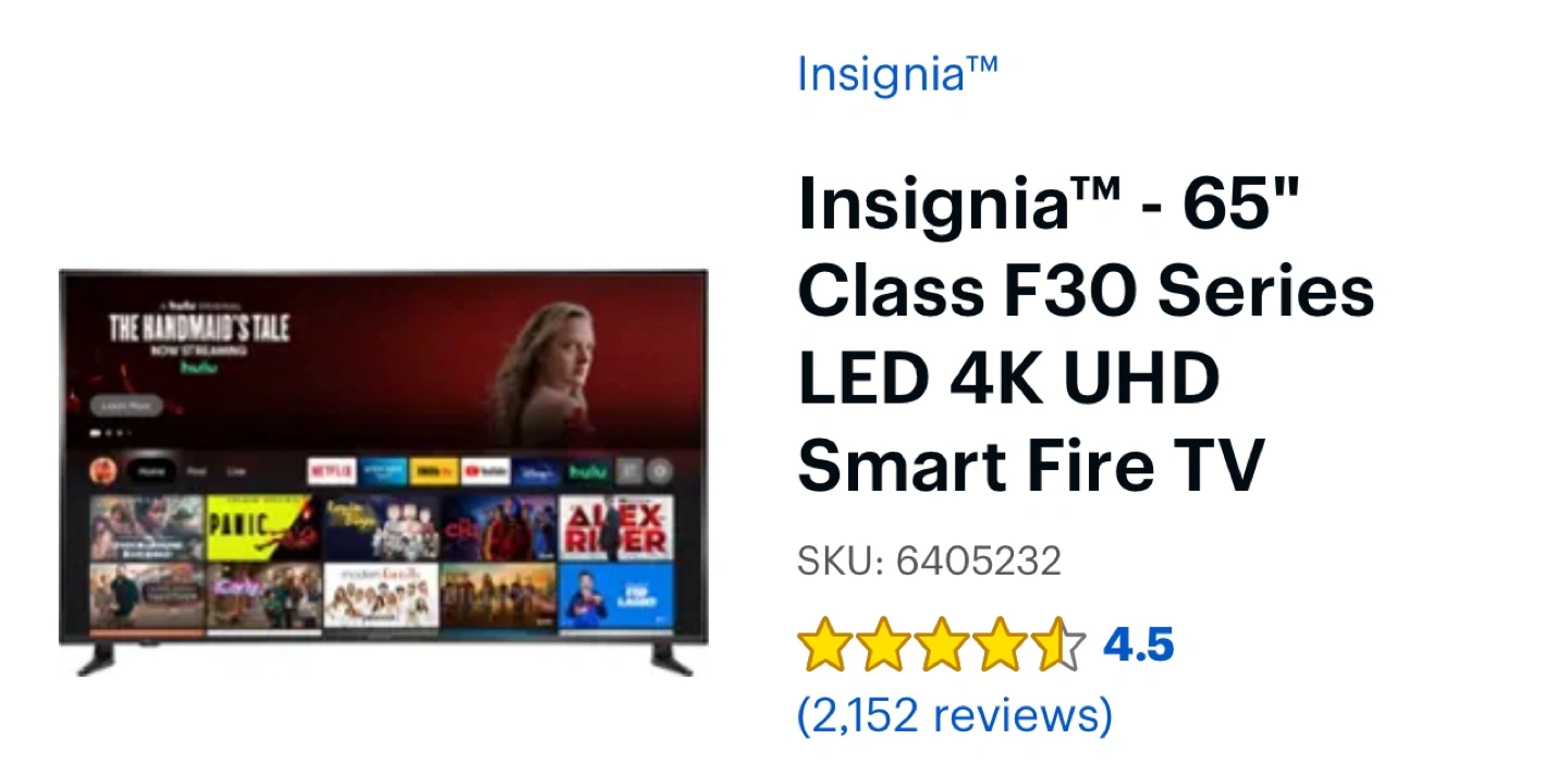 Insignia 65" Class F30 Series LED 4K UHD Smart Fire TV