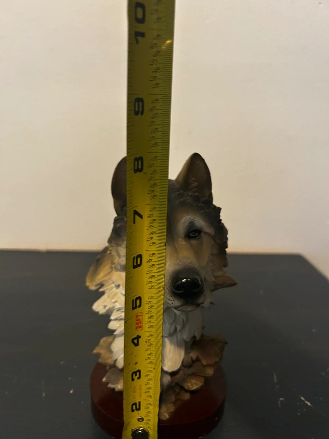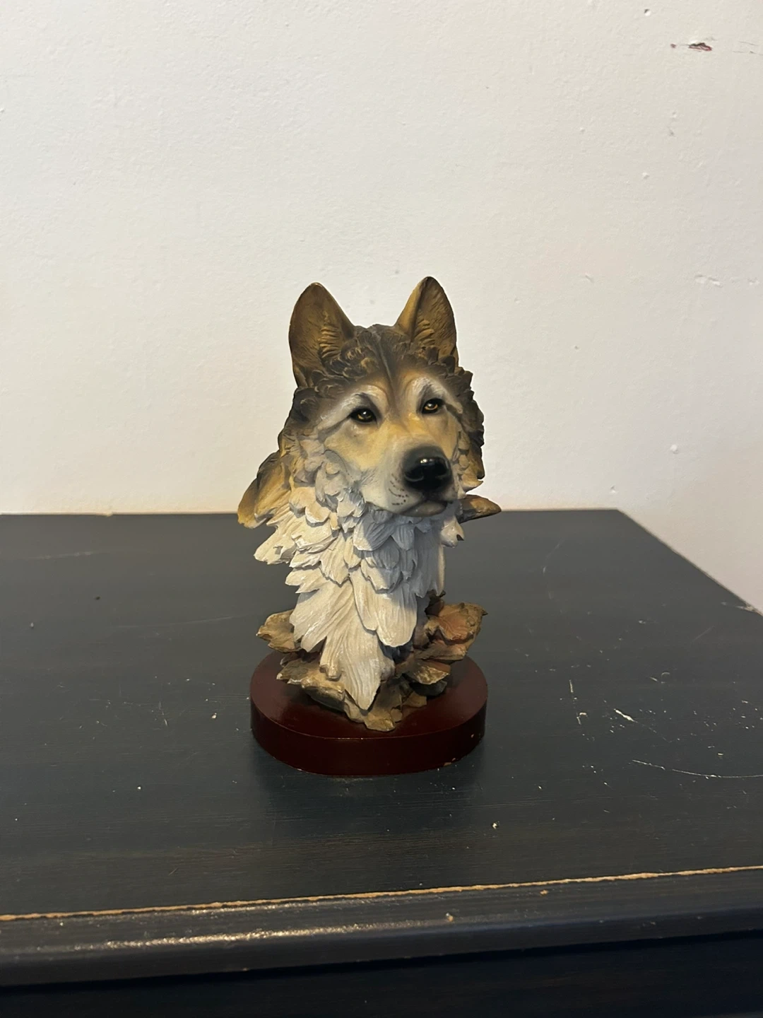 Selling a wolf head bust statue. It measures approximately 10 inches in height
