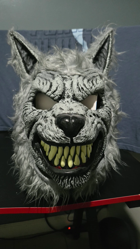 60Selling a realistic wolf mask, perfect for Halloween or costume parties! It has a ferocious look with detailed fur and menacing teeth. Great for adding a spooky touch to any event