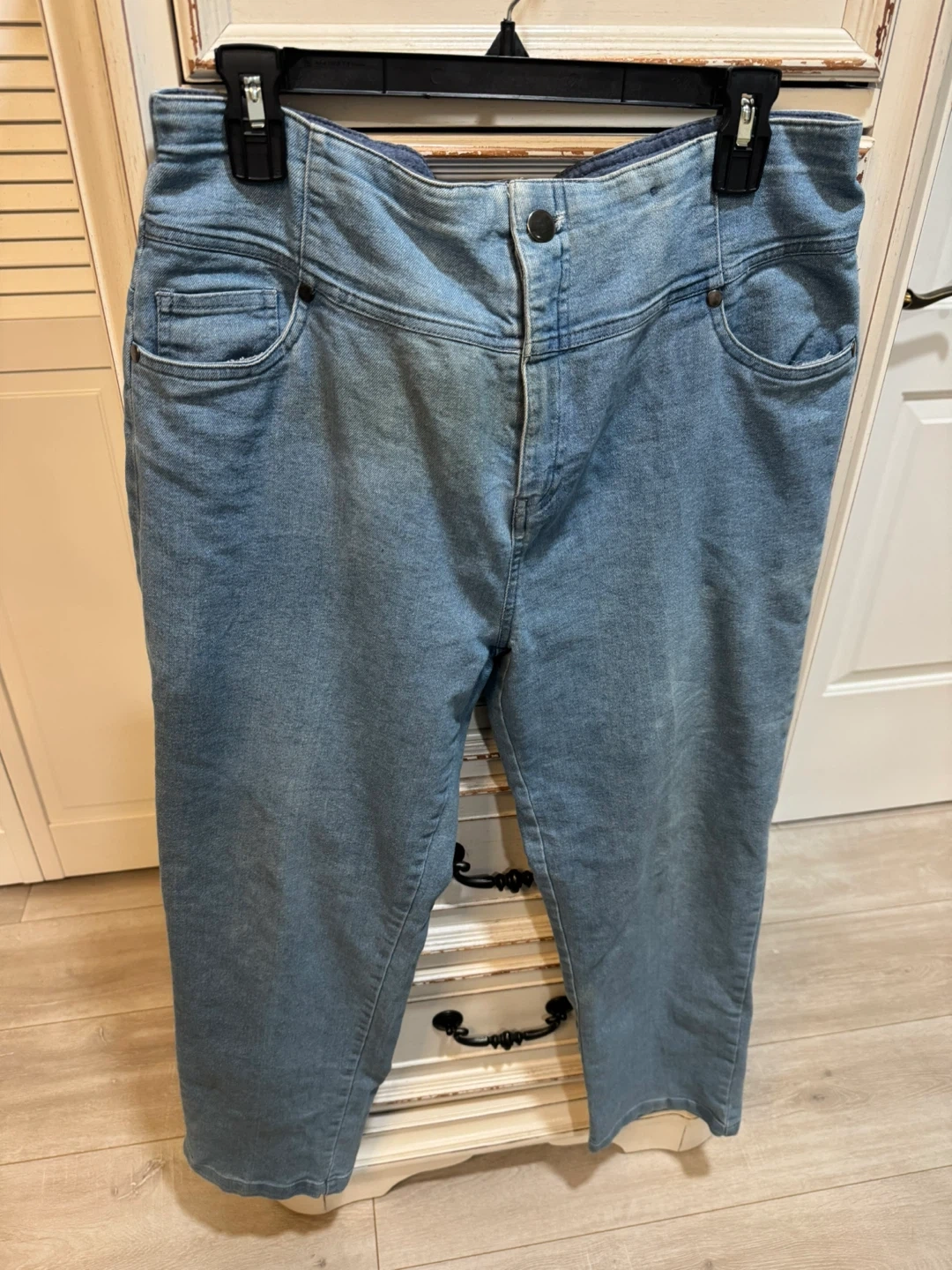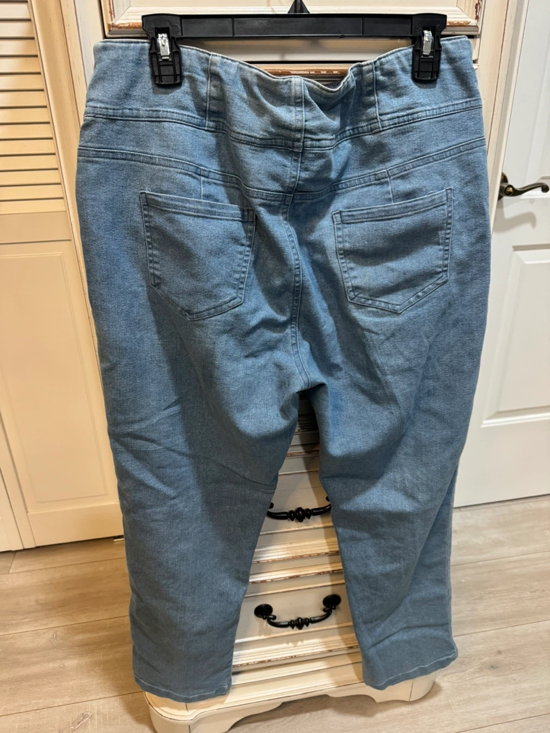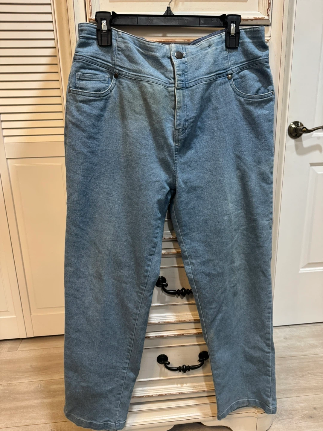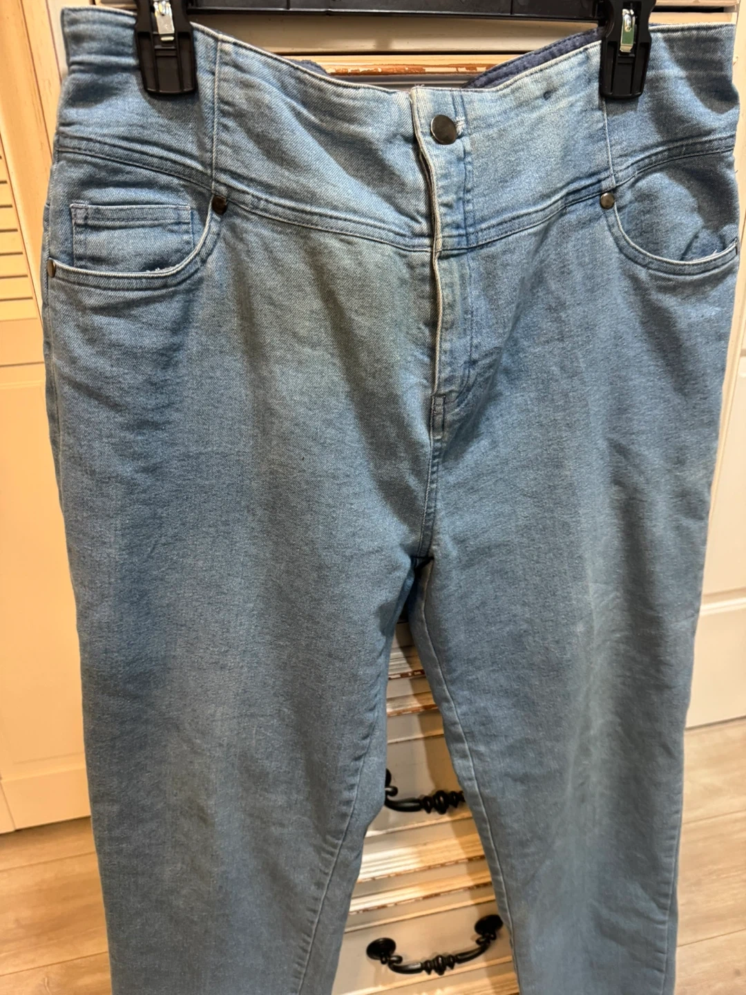 65Here are some light wash denim jeans! They are in good condition and ready for a new home. They have a classic denim look that can be dressed up or down. Perfect for everyday wear!