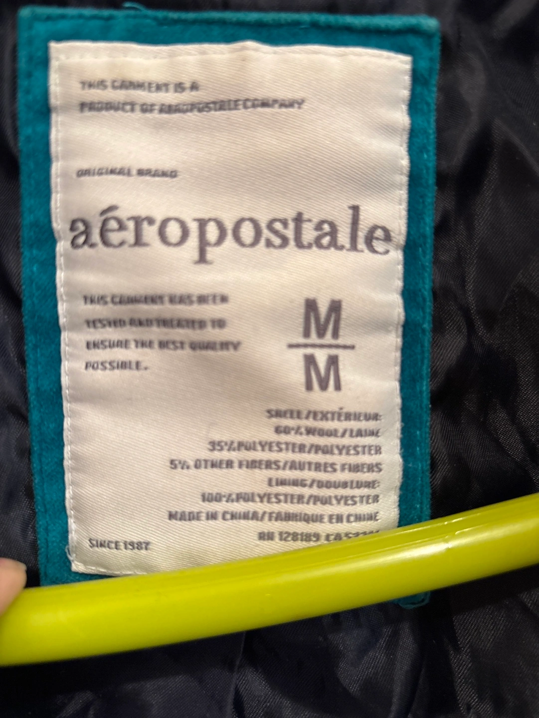 419Blue and teal plaid peacoat. Double-breasted buttons. Side pockets. Size Medium. Good condition.