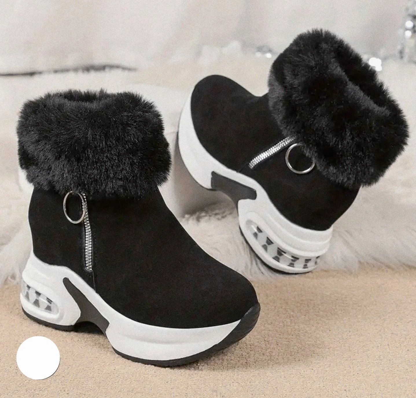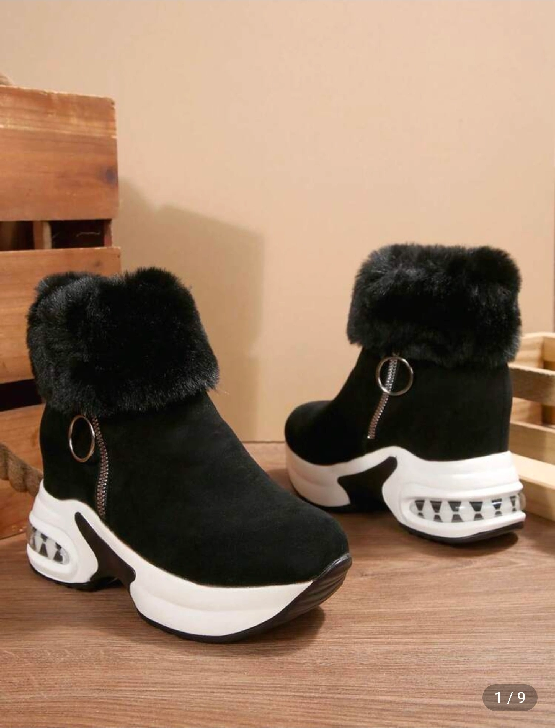 81These Women's Ankle Boots with a Wedge Heel are a stylish and comfortable choice for any outfit. The solid pattern and ankle shaft style give them a modern look, while the wedge heel adds a touch of elegance. With a zip closure and cozy comfort features, these boots are perfect for everyday wear. The fur trim and zipper accents provide additional flair to these versatile and trendy footwear options. Perfect for a fashion-forward woman looking for both style and comfort in her footwear. Women's Ankle Boots, Soft & Comfortable, Durable Soles, Warm, Waterproof Platform, Side Zipper, Buckle, Suitable For Casual Indoor & Outdoor Wear.