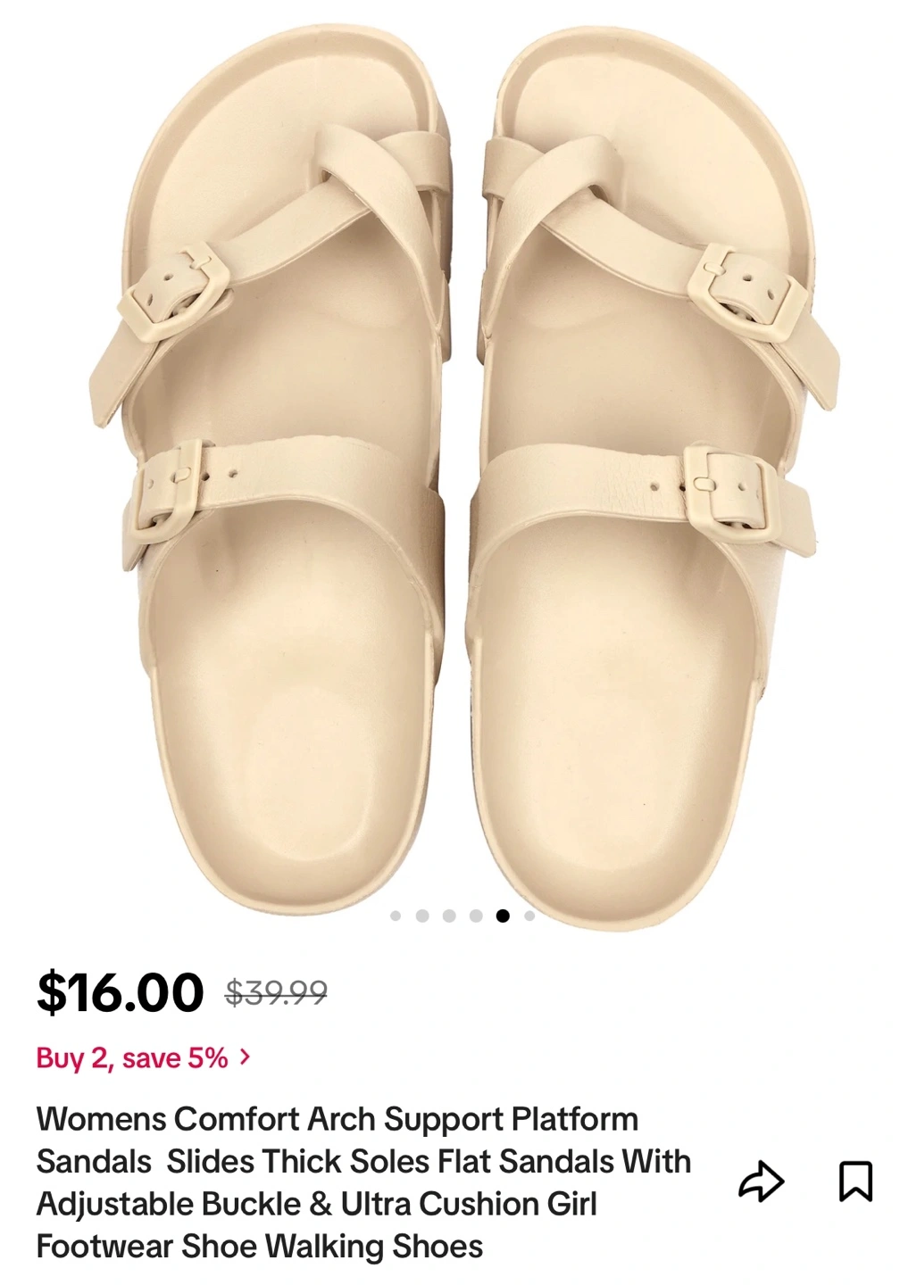 327Comfortable arch support platform sandals. Thick soles, flat sandals with adjustable buckle. Ultra cushion. Great for walking.
