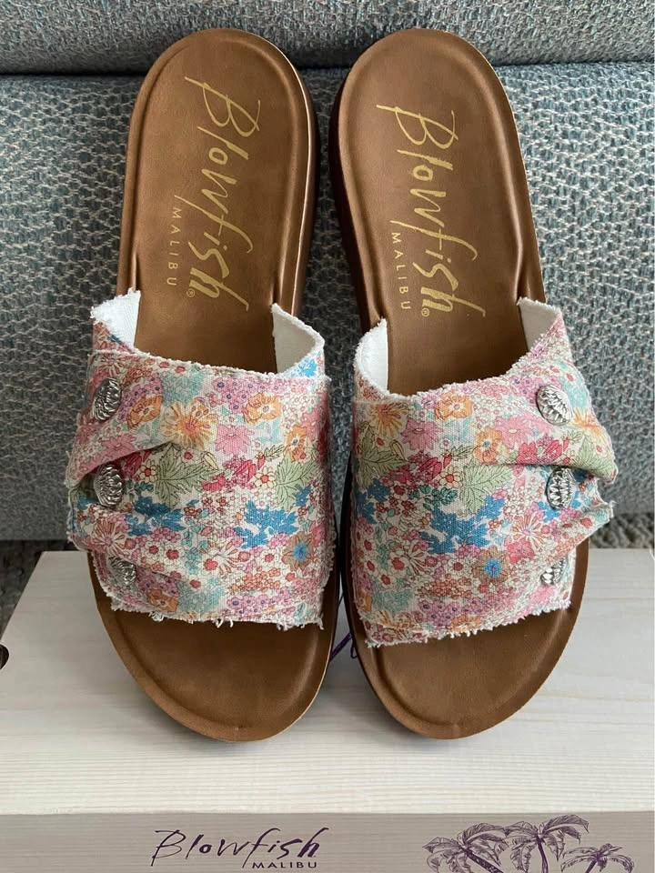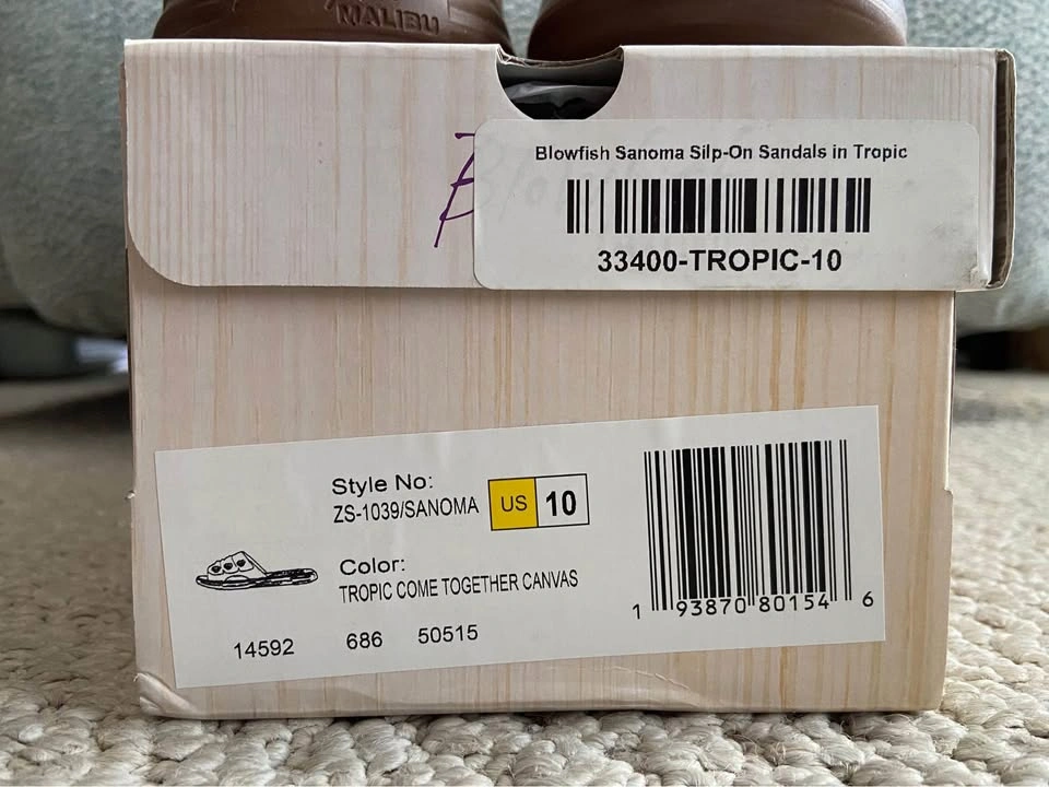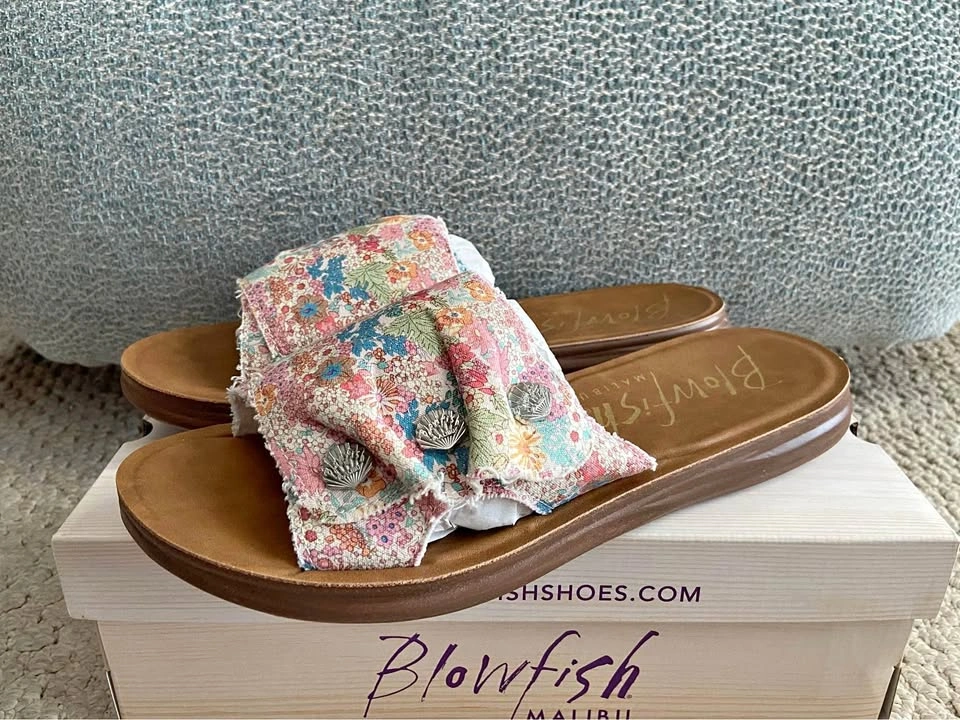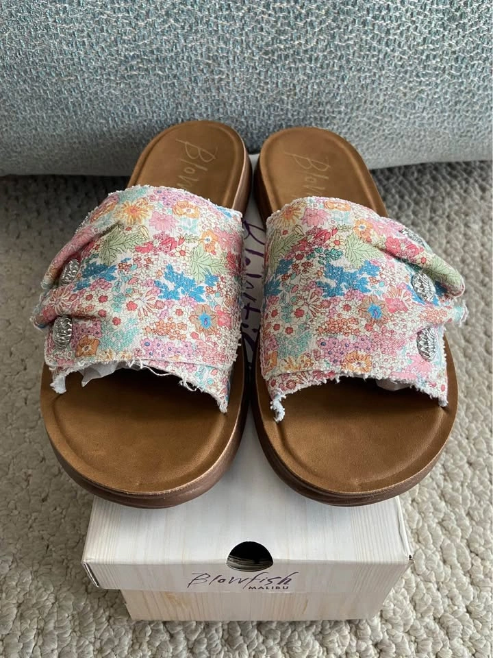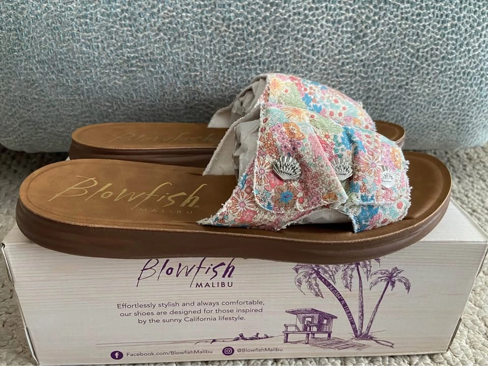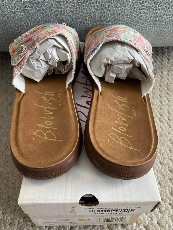 65Women’s Blowfish Sanoma Tropic Floral Fabric Slip-On Sandals, size 10. *New in Box! Floral print fabric upper with decorative buttons, very lightweight, with a comfortable cushioned footbed. Original $34.99. Meet in Garfield Ridge, Chicago, near Midway. Willing to meet near Oak Lawn, Alsip, Orland, Countryside, LaGrange, Burr Ridge, Hinsdale, Darien ☺️