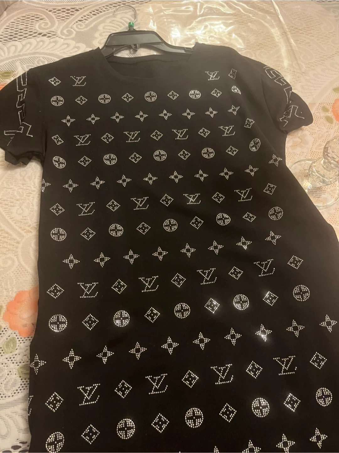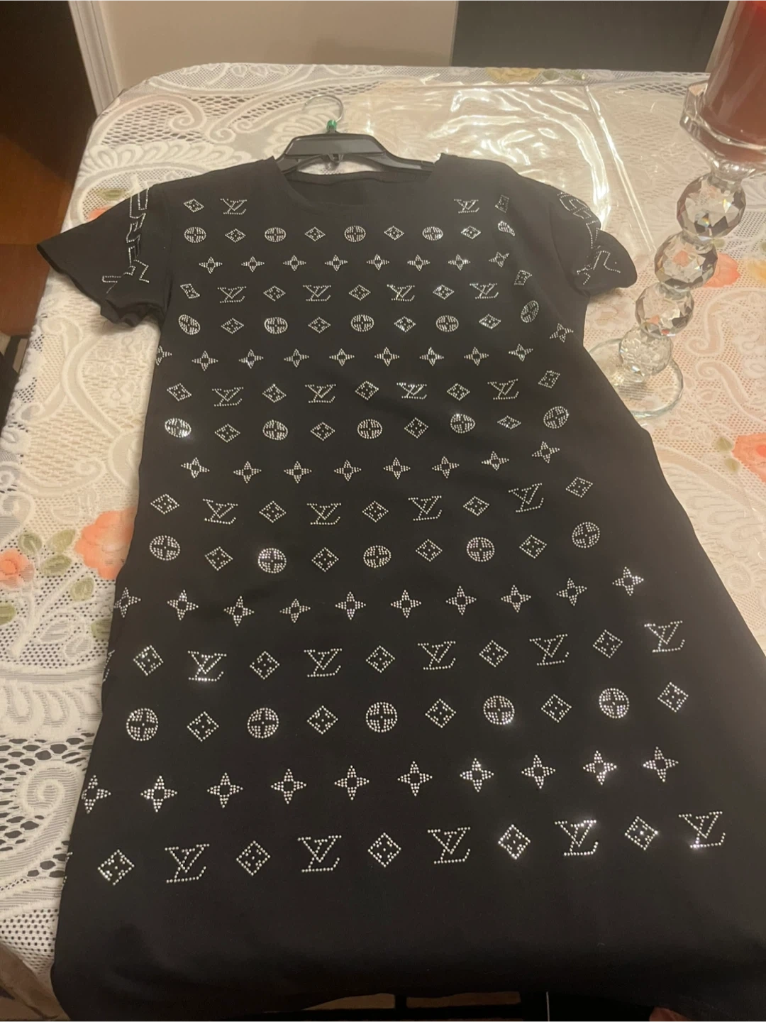 73Women’s Bling Lv Dress !!!!! Knee length dress. One size fits all . Like New condition. Pick up only from my location please.