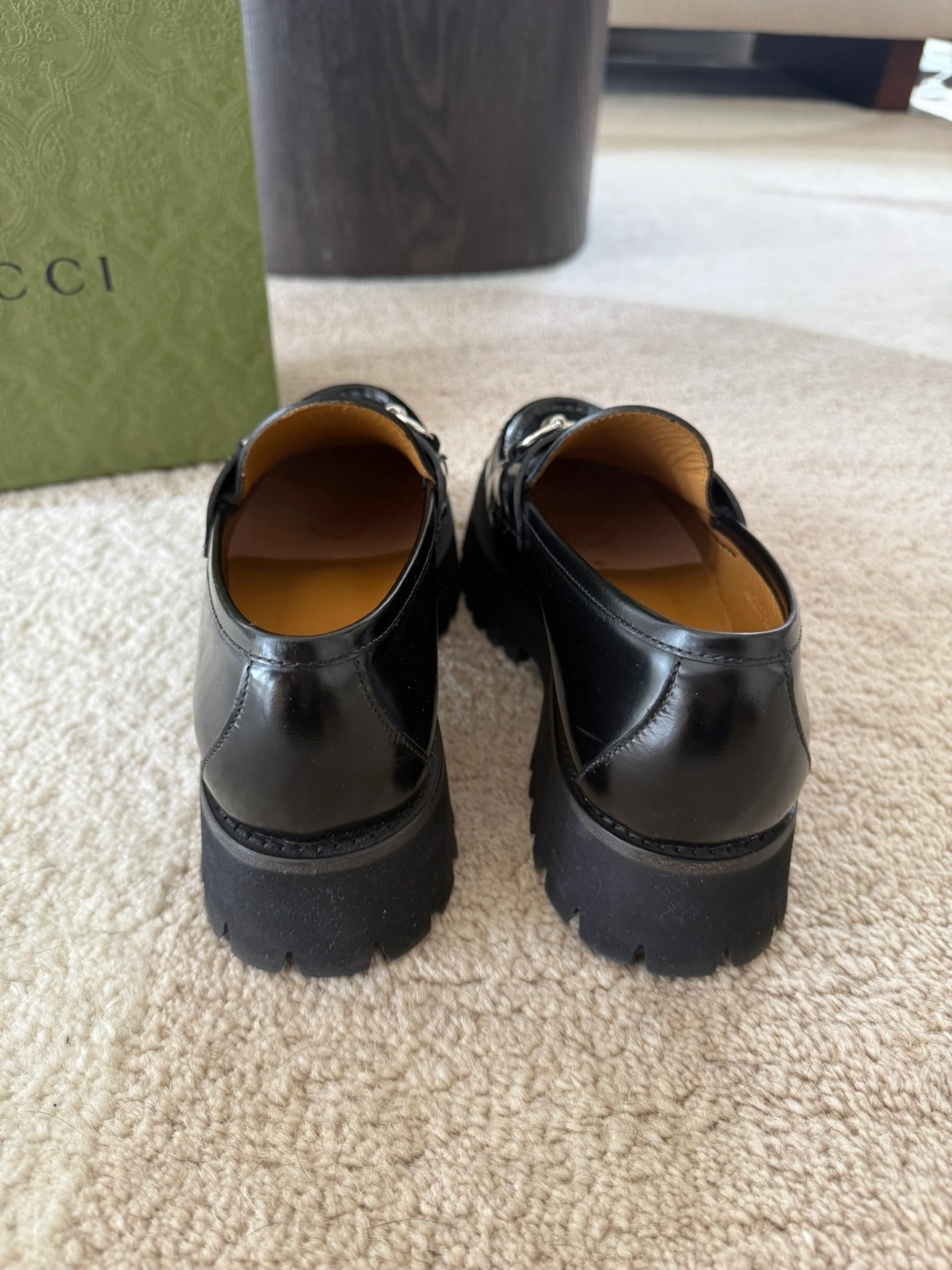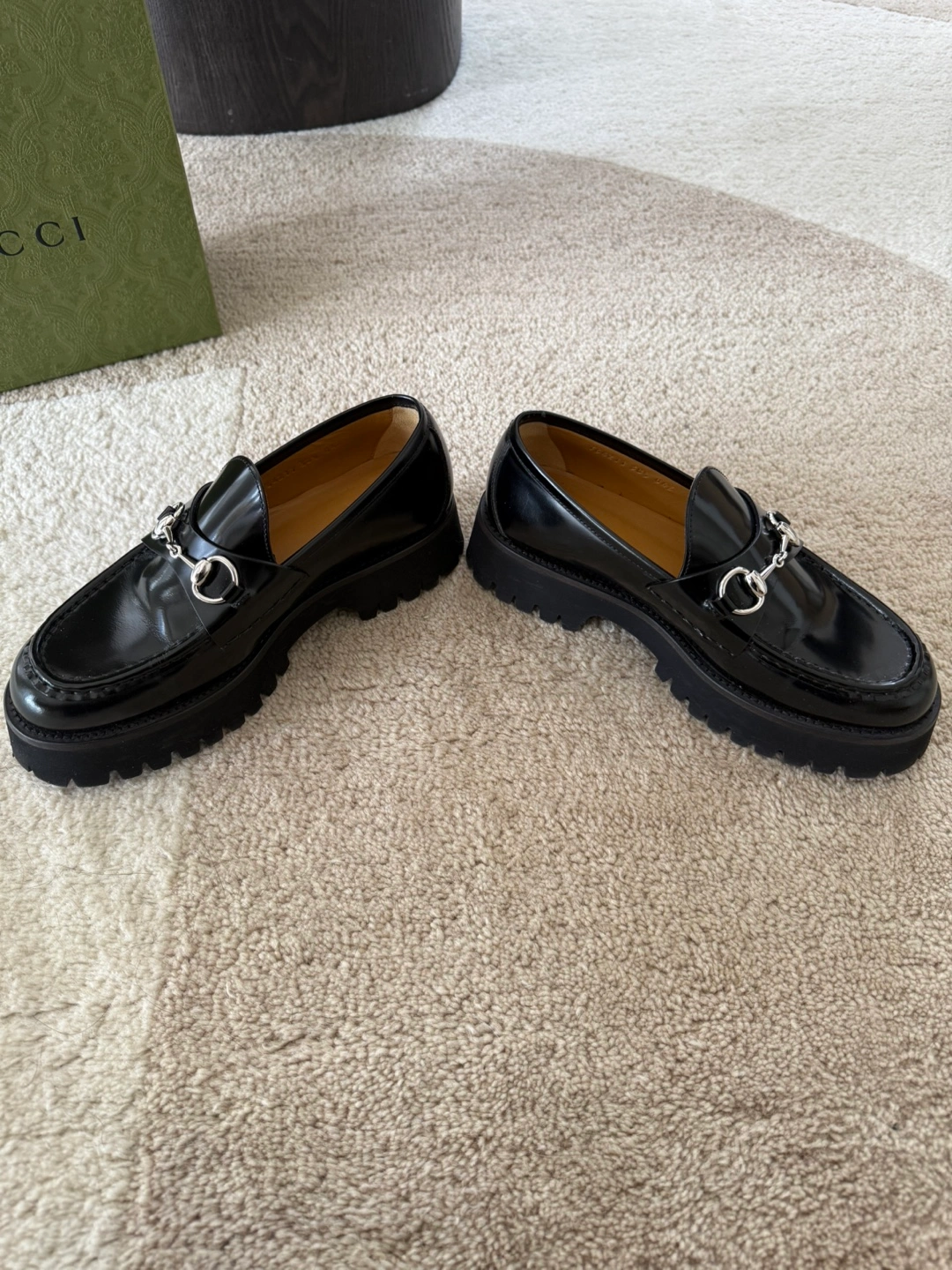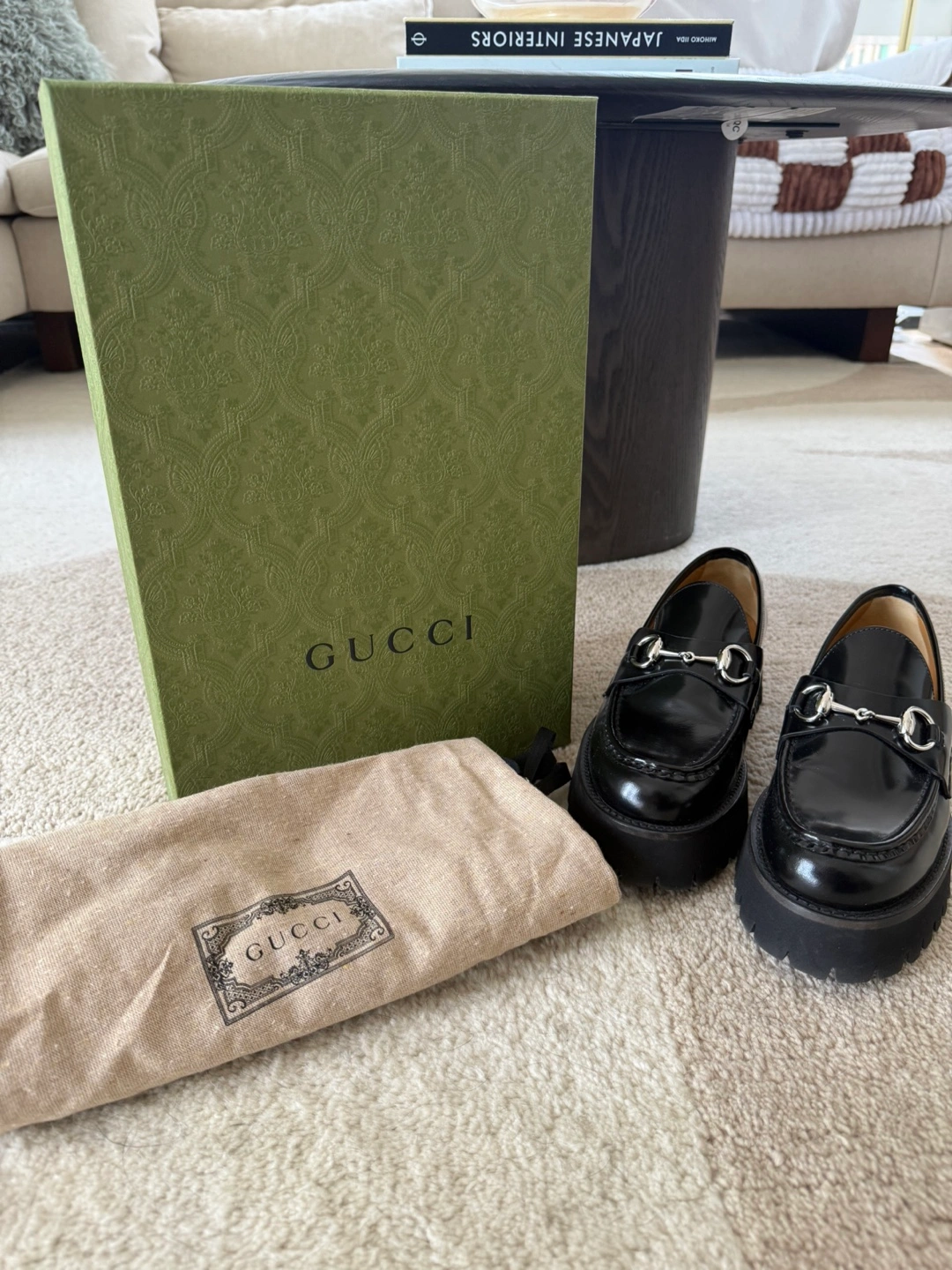 Women’s Gucci Loafer with Silver Horsebit. Size 38.5. Comes with box and shoe bags. Like new, worn twice. Retail price new: $1,220