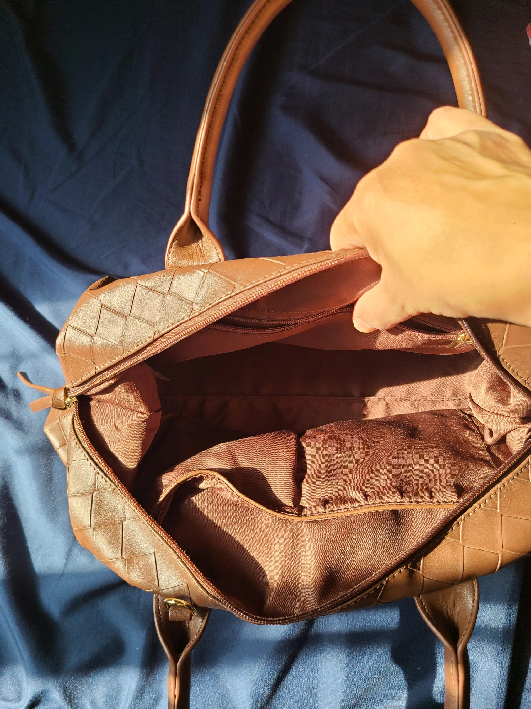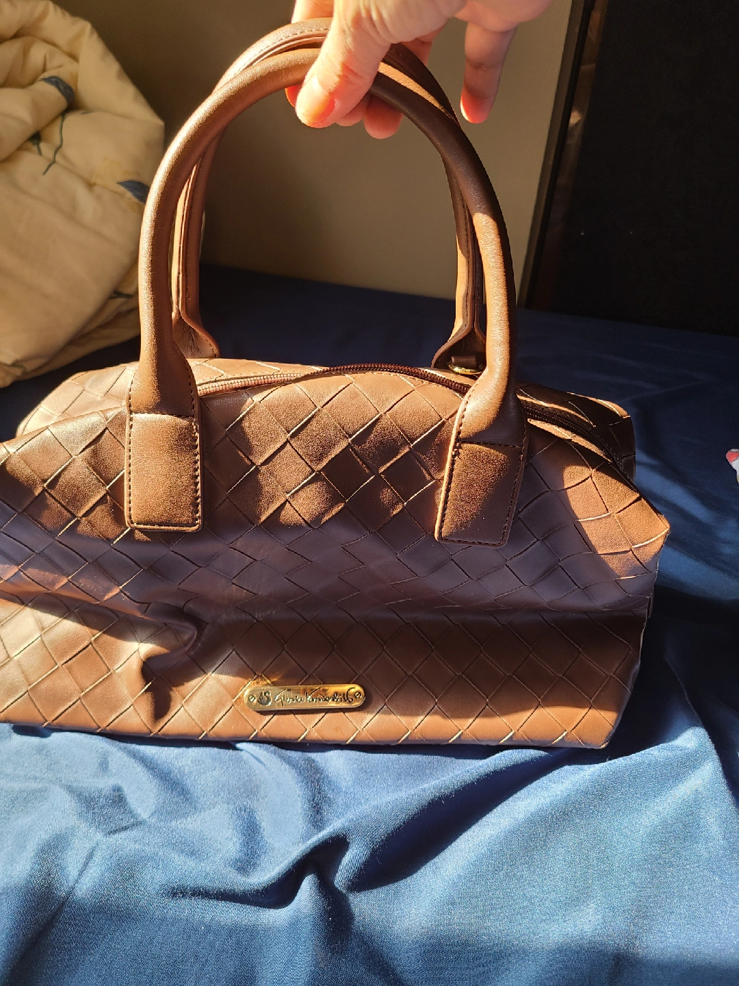 136Gloria Vanderbilt faux leather brown woven doctor bag. Only worn once, in excellent condition.