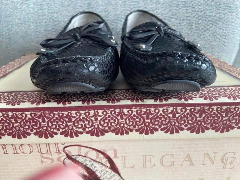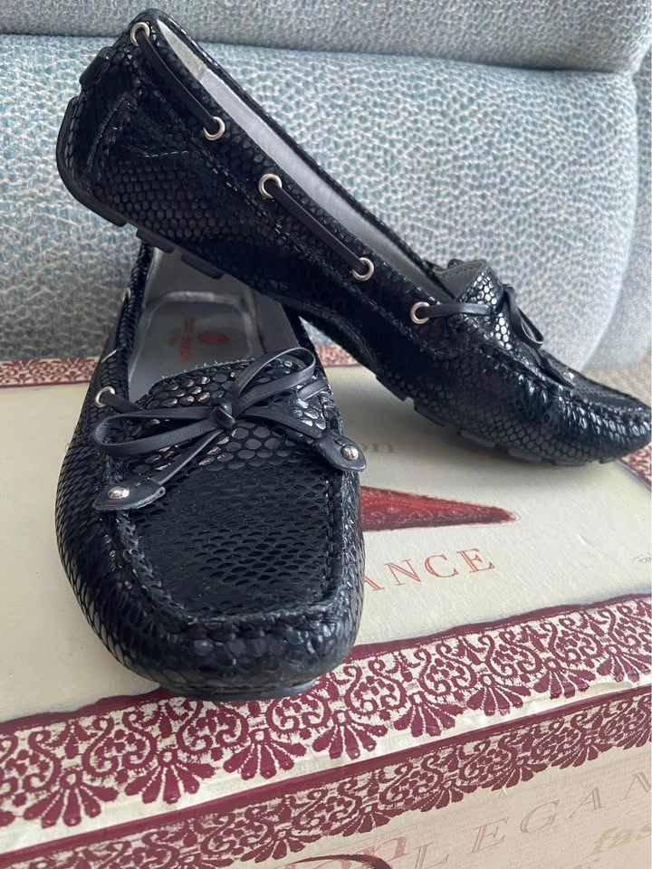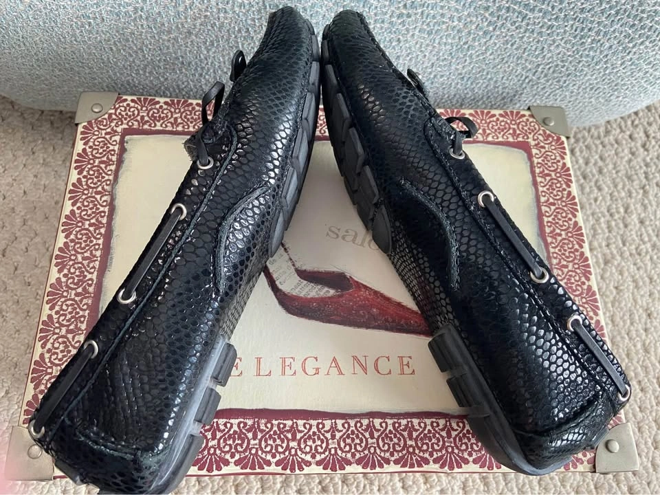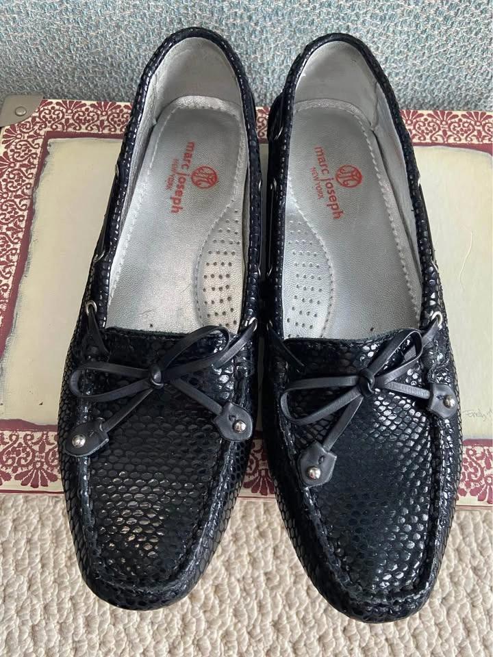 65Women’s Marc Joseph Black Snake Embossed Leather Driving Loafers, size 8.5. Gently used in Excellent Condition. Made from buttery-soft nappa leather, hand-stitched and has a nubby rubber sole. Leather-lined with a soft cushiony insole and cushioned arch support. Original $165. Cash only. Meet in Garfield Ridge, Chicago, near Midway. Willing to meet near Oak Lawn, EP, Alsip ☺️