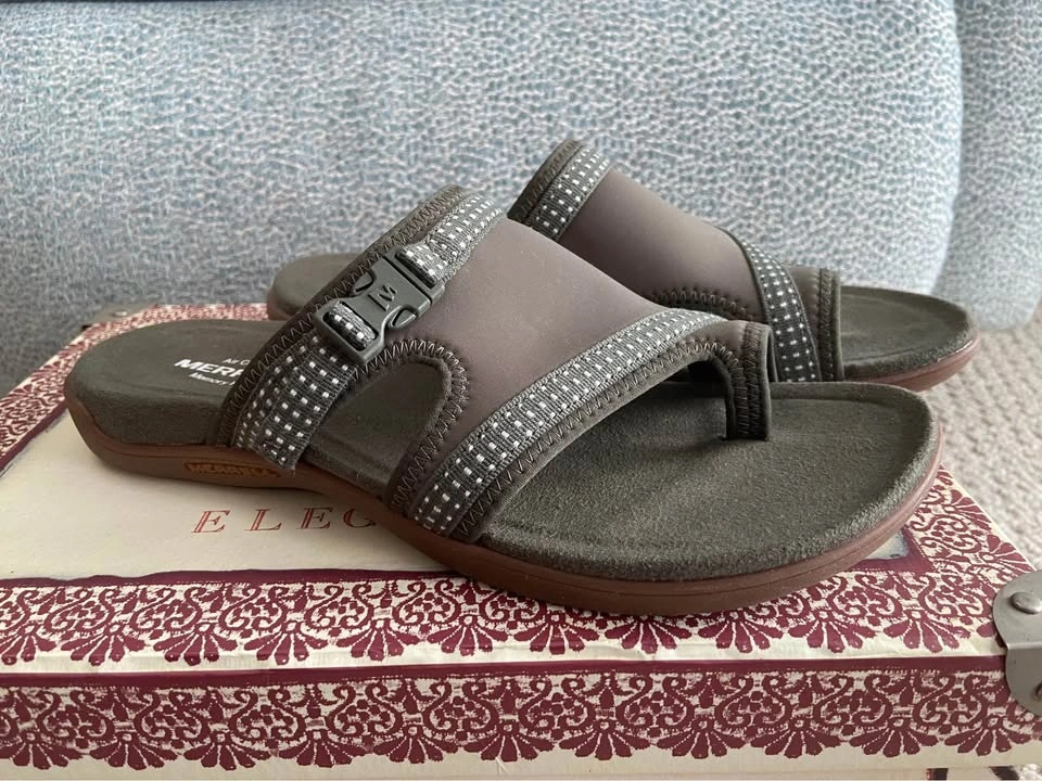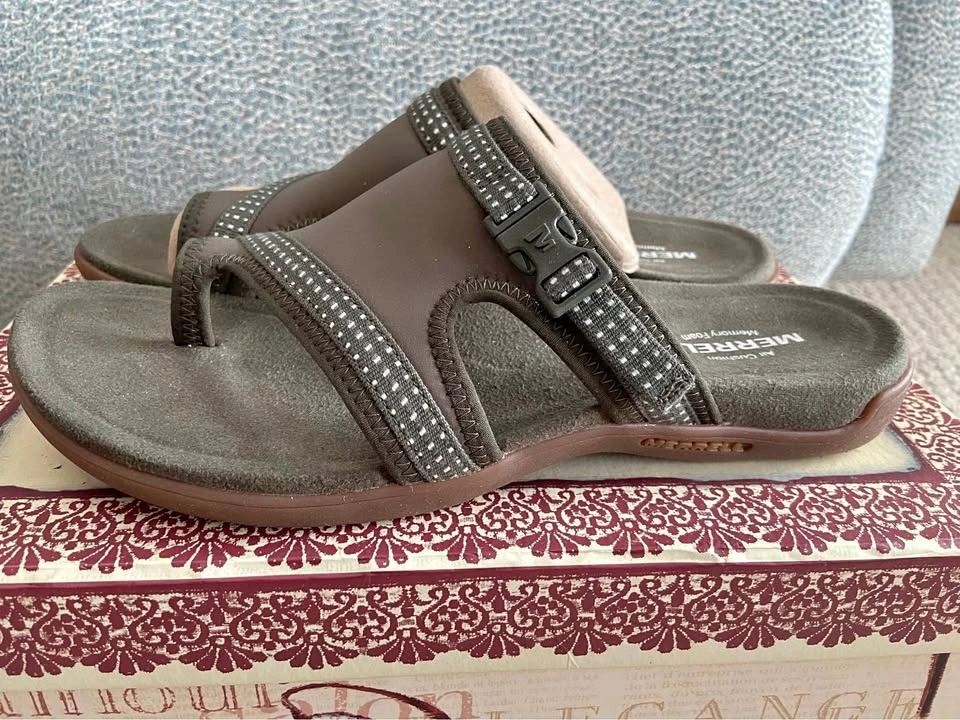 65Women’s Merrell thong sandals in dusty olive, size 9. *NEW, never worn!! Has air-cushioned, memory foam shock-absorbing heel for comfort. Suede-like soft cushioned footbed. Durable rubber outsole. Adjustable strap. Original $69. Meet in Garfield Ridge, Chicago, near Midway. Willing to meet near Oak Lawn, EP, Alsip, Orland, Palos, Countryside, LaGrange, Burr Ridge, Hinsdale, Darien ☺️