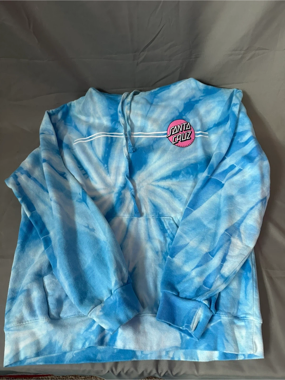 65Selling a Santa Cruz tie dye hoodie! The hoodie features the Santa Cruz logo on the front and back. It's in great condition and ready for a new home