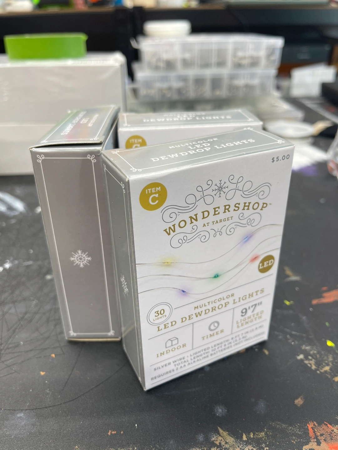 273Boxes of LED dewdrop lights. Each box includes 30 lights. Also includes a timer. Great for creating a calm atmosphere in your room.