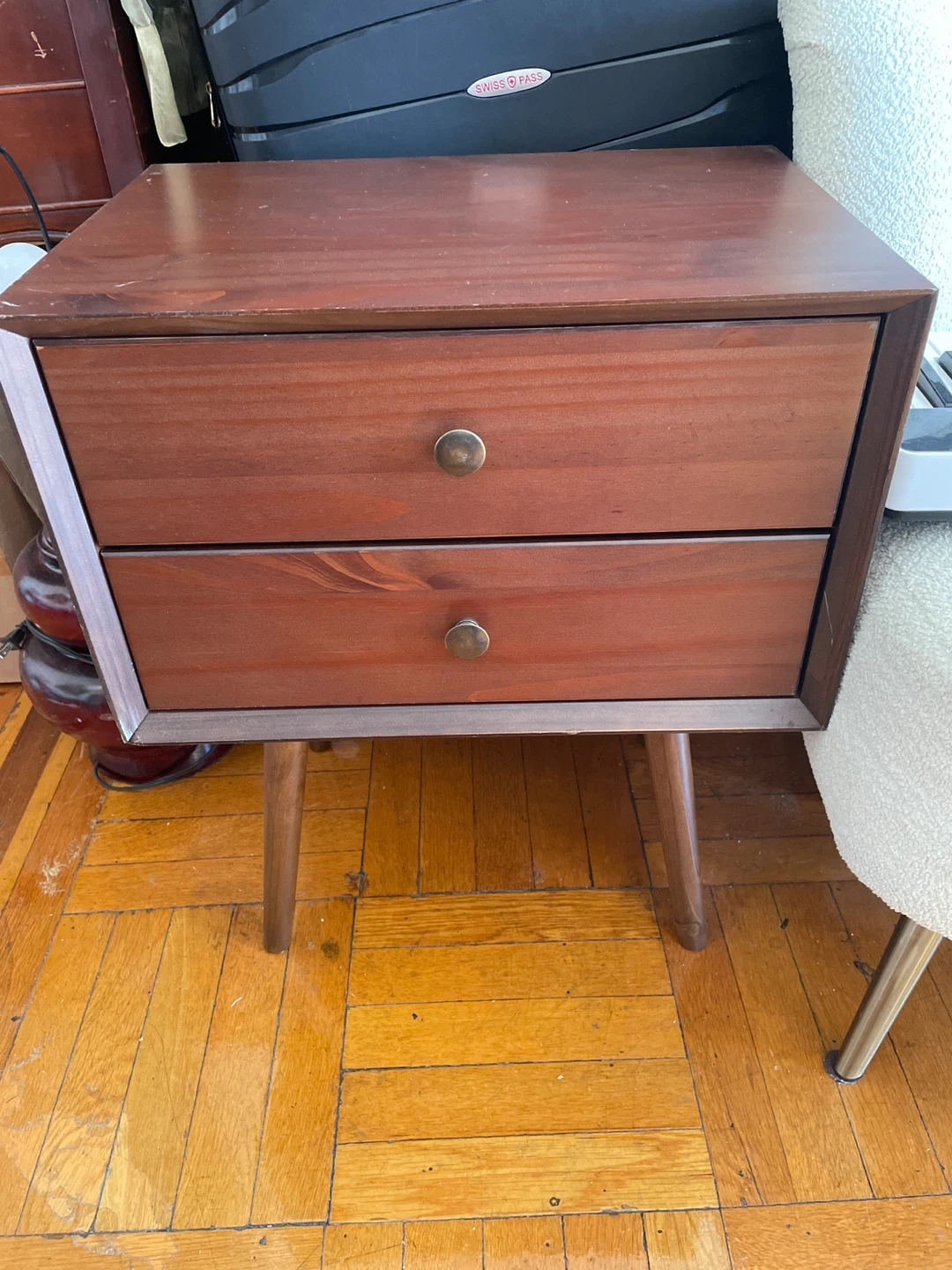 60Selling a wood nightstand with two drawers. It's in great shape and would be a nice addition to any bedroom