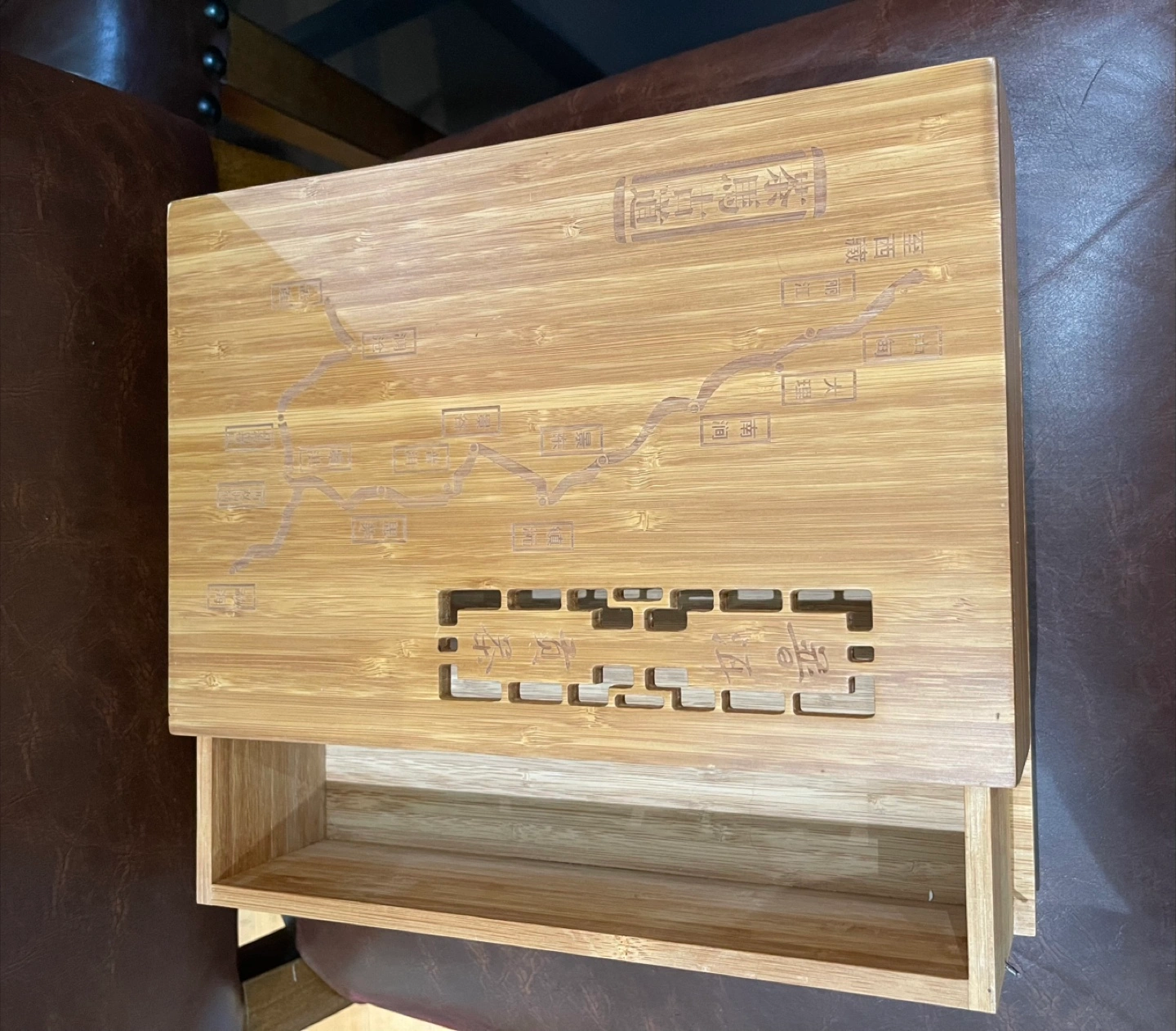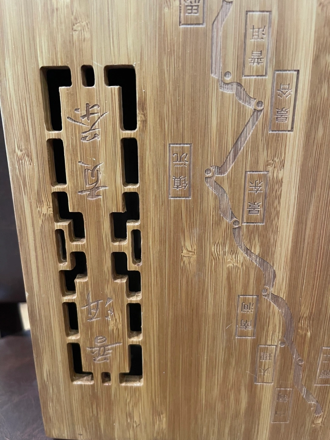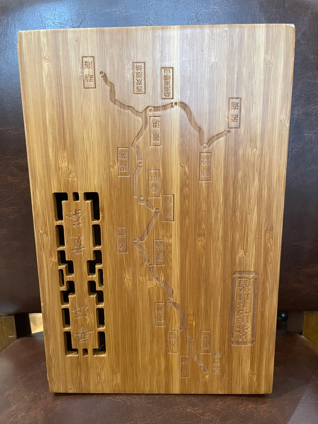 10Intricate carvings of Chinese villages. The lid is removable and slides off and on. Measures 12x8x3.