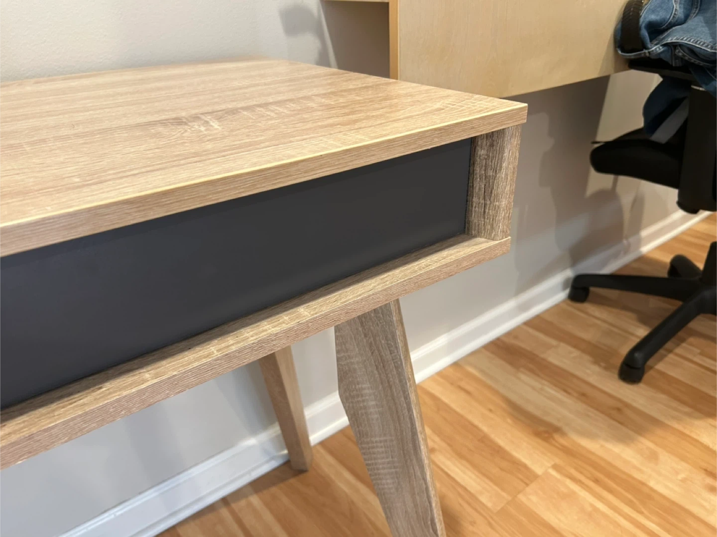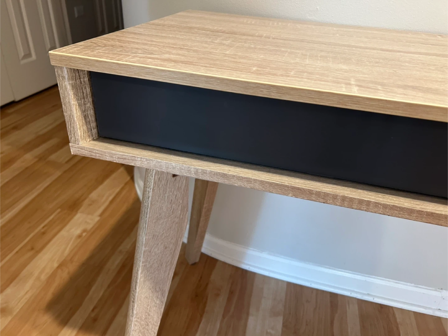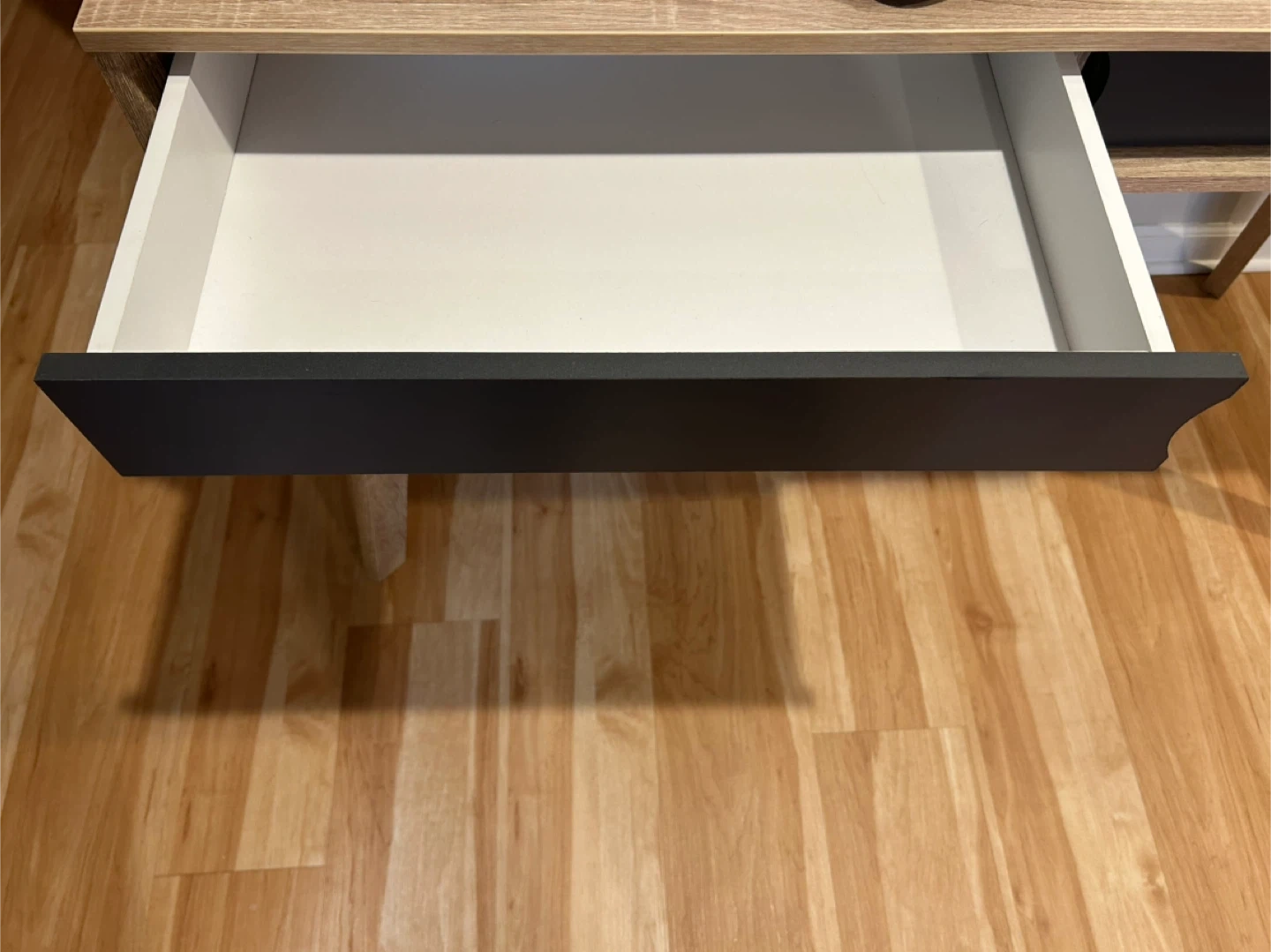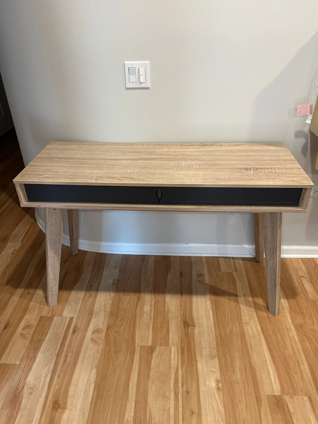 60Selling a wood desk with a drawer! It's in great condition and would be perfect for a home office or study space. The desk features a light wood finish with a contrasting dark drawer front. It's a stylish and functional piece of furniture! Dimensions (Overall) 29.72 Inches (H) x 47.4 Inches (W) x 17.87 Inches (D) (75.5 x 120.4 x 45.4 cm) Weight 58.42 Pounds (26.29 kg) (26.5 kg) Material MDF Composite (Medium-Density Fiberboard), Particle Board (Frame) Surface Material Wood