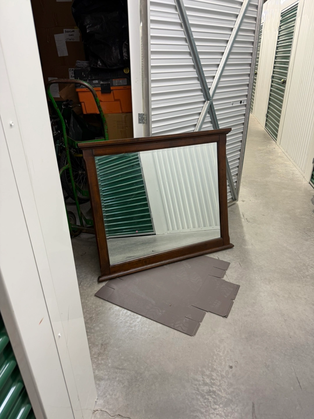 Here's a nice wood-framed wall mirror! It's in good condition and ready to brighten up your space. Perfect for adding a touch of warmth and style to any room MEASUREMENTS H - 36 inches D W - 43 inches D - 2 inches ——- DELIVERY Available for an additional charge Pick up in either 10704 or 11249