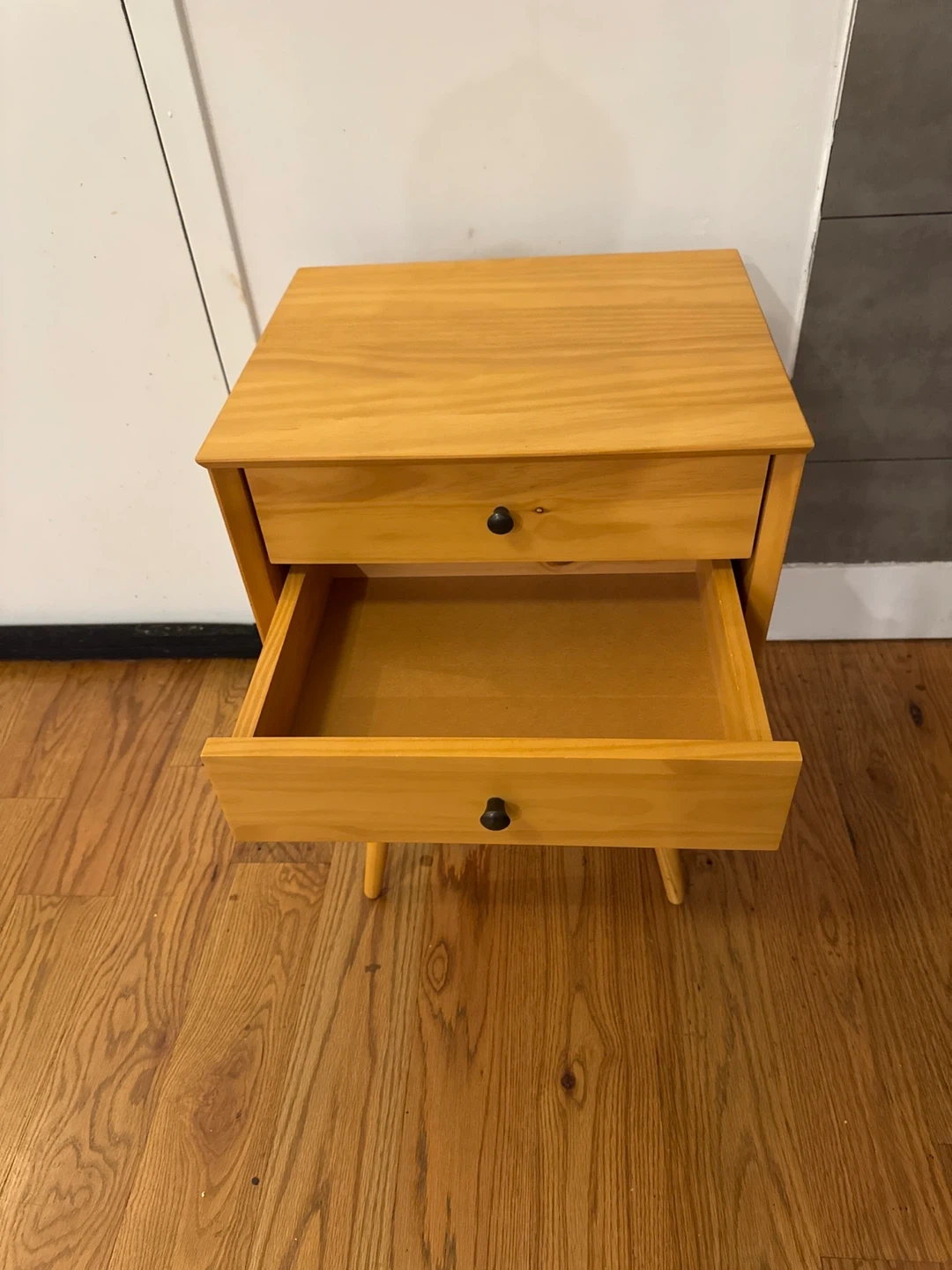 Selling a cute wood nightstand! It features two drawers for storage and a simple, clean design that would look great in any bedroom space. It's in great condition and ready for a new home.