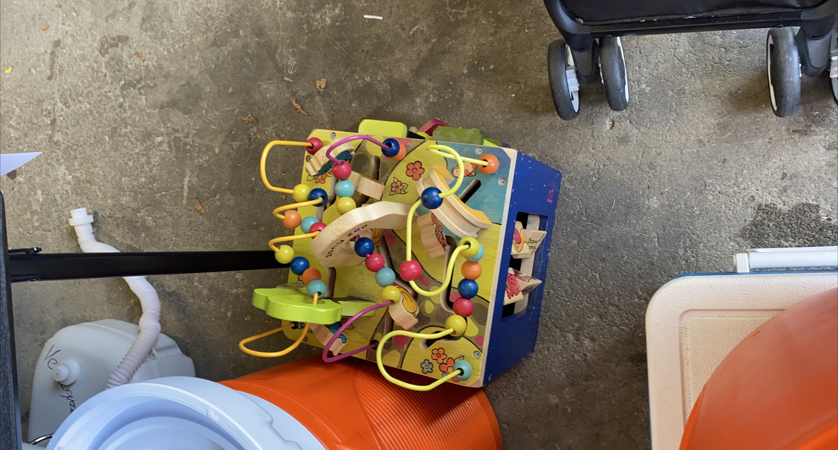 Selling a wooden activity cube toy! It's got lots of different activities to keep little ones entertained, like bead mazes, shape sorters, and more. Perfect for toddlers and young children