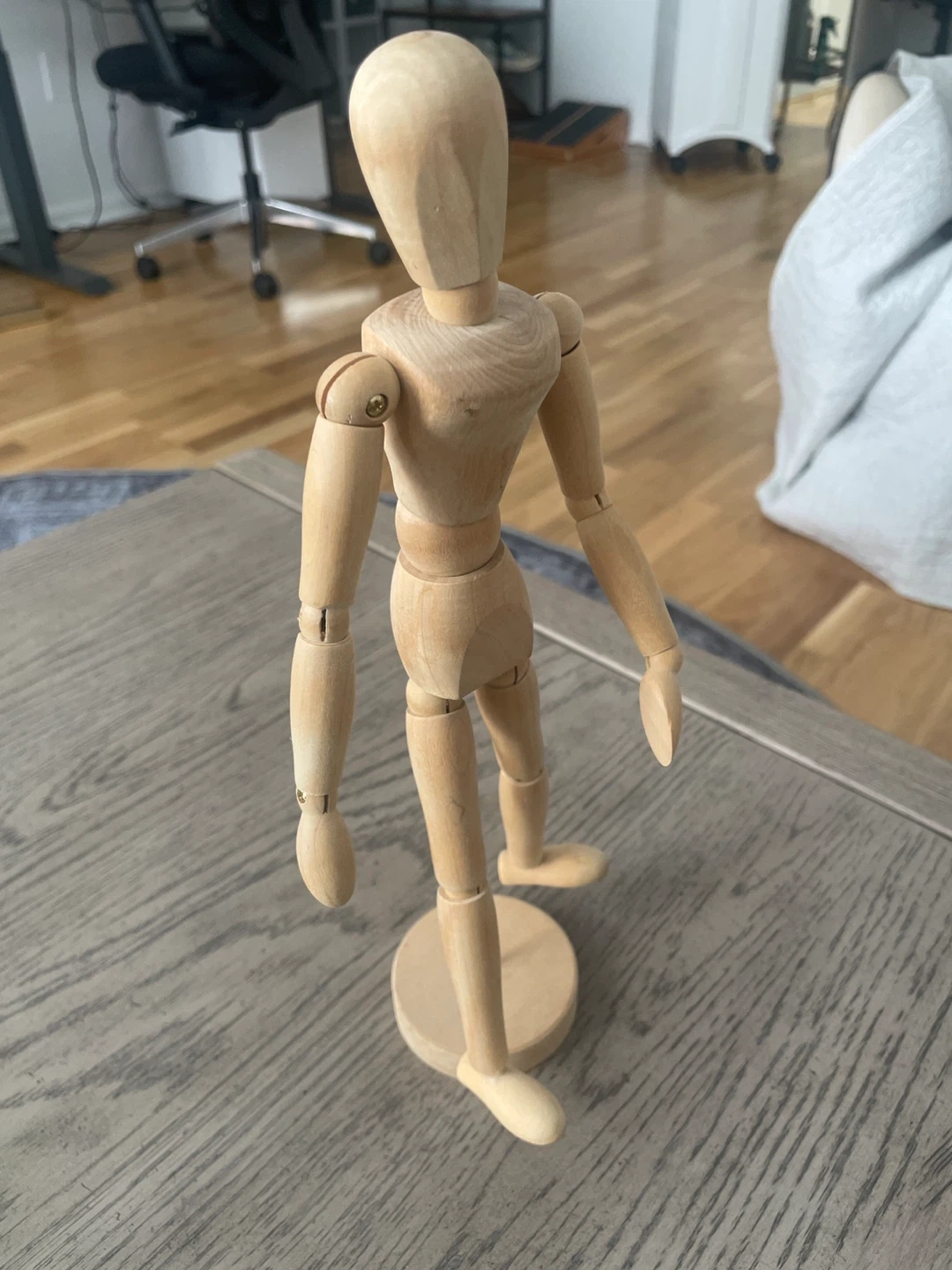 10This is a wooden art manikin, perfect for artists or anyone looking for a unique decorative piece! It's in great condition and ready to be posed and displayed
