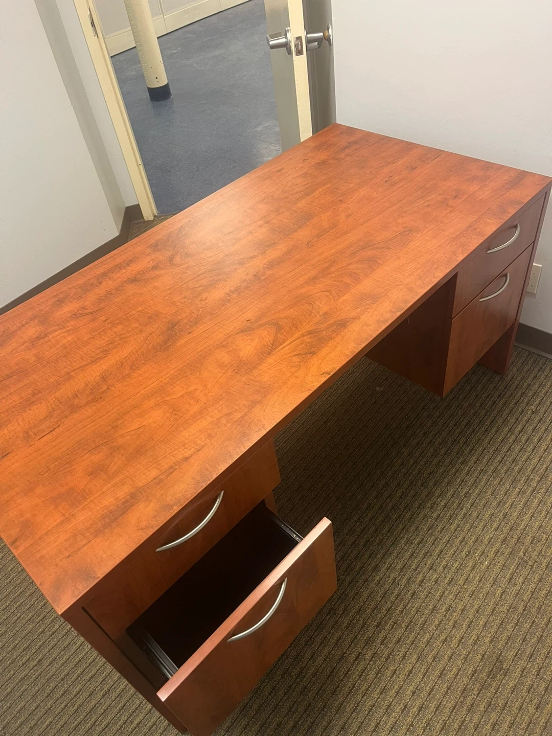I'm selling a wooden desk with drawers. It's in good condition and perfect for a home office or study space. The desk features multiple drawers for storage, helping you keep your workspace organized and clutter-free PICK UP ASAP I have 3 available