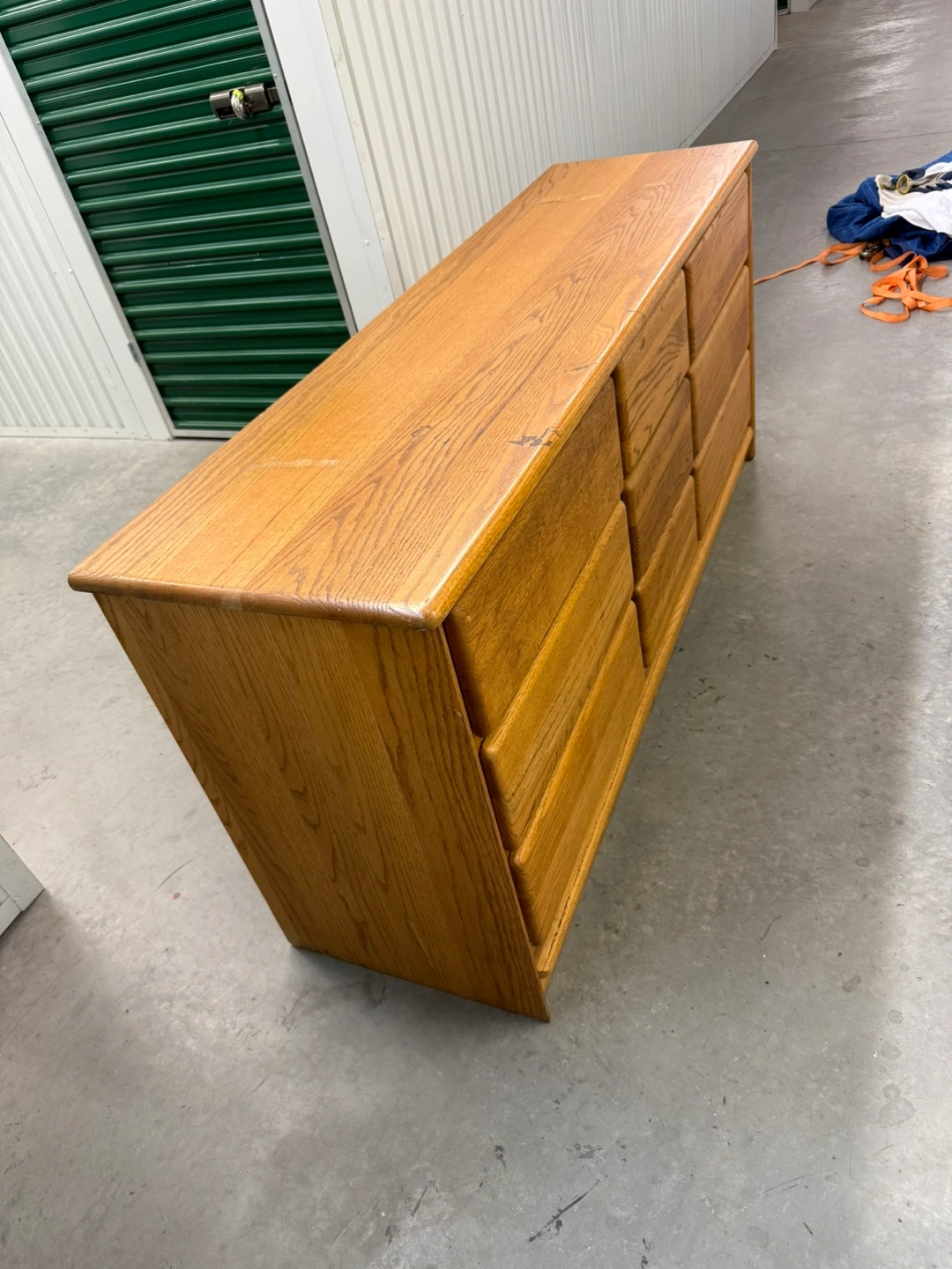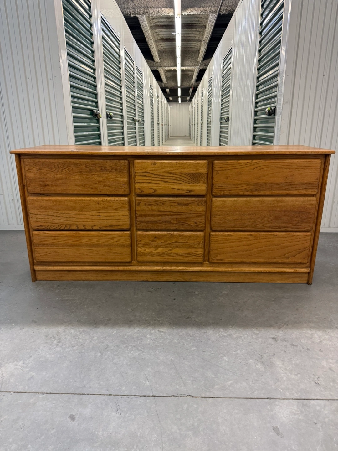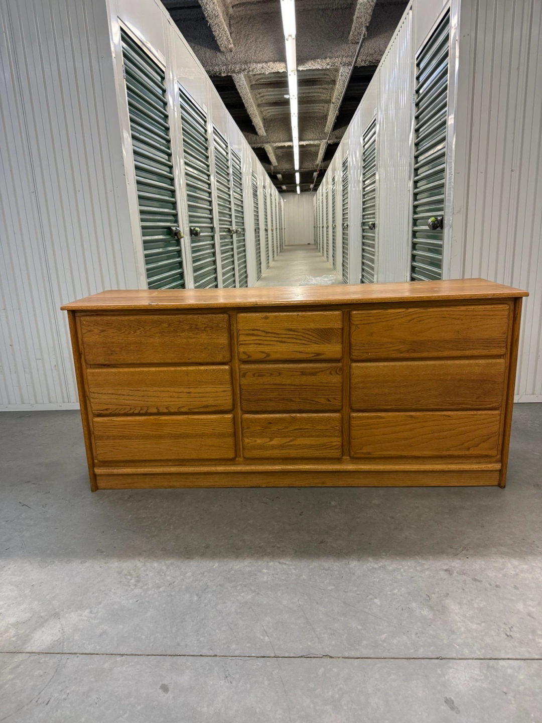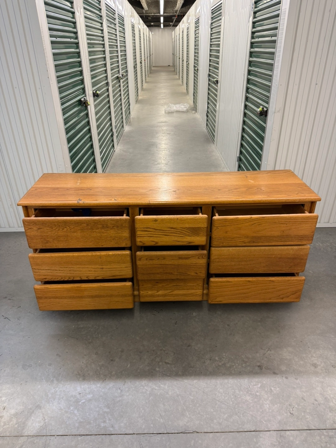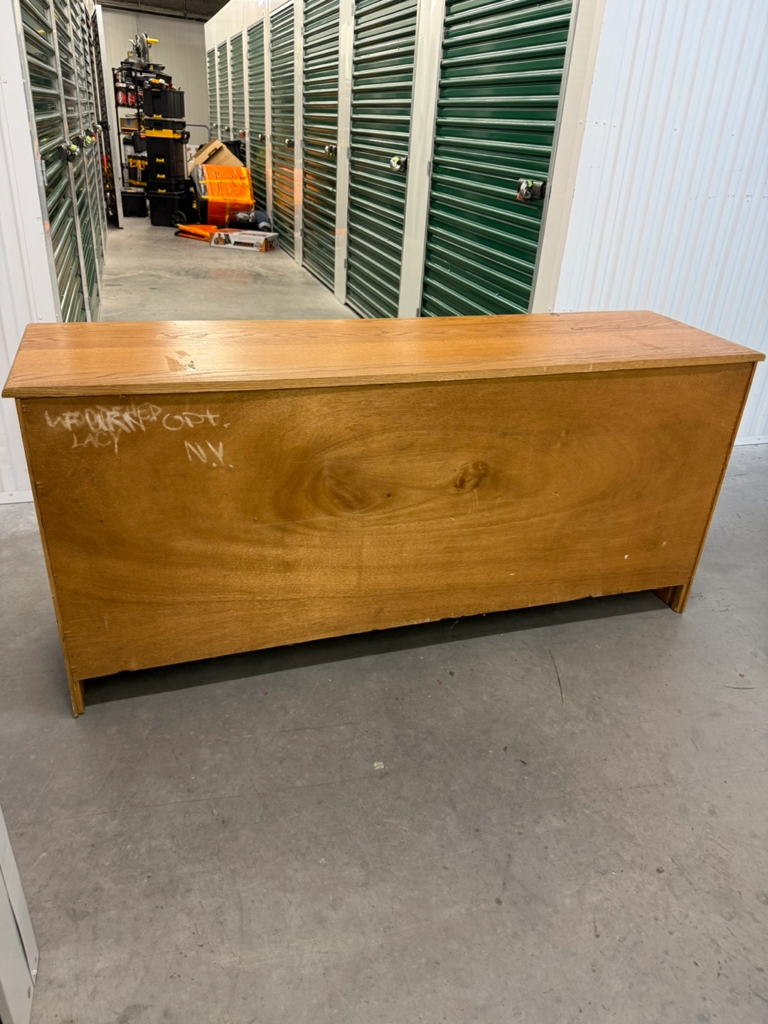 Dresser, made of wood. Nine drawers. Simple, classic design. It would be a good addition to a bedroom, making it easier to find peace and relaxation. MEASUREMENTS H - 30 W - 64 D - 19 ——- Delivery available for an additional charge