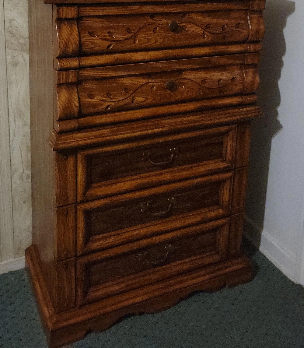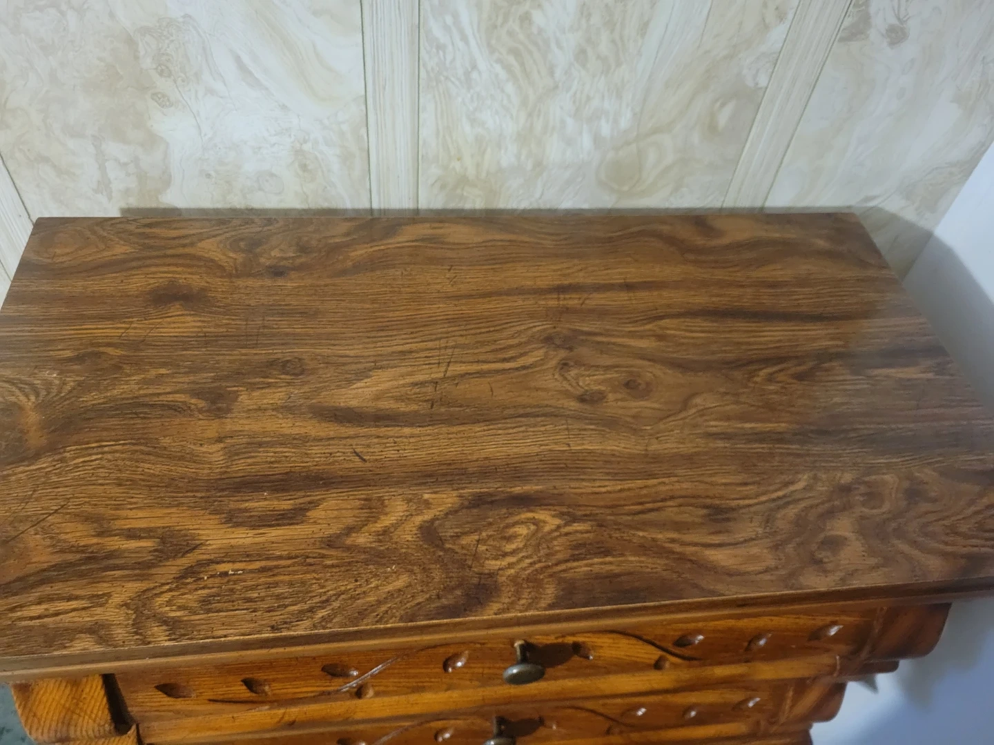 65Selling a wooden dresser with a unique floral design. It features 5 drawers for ample storage space. The dresser is in good condition and ready to enhance your bedroom decor. Perfect for adding a touch of vintage charm to your home!