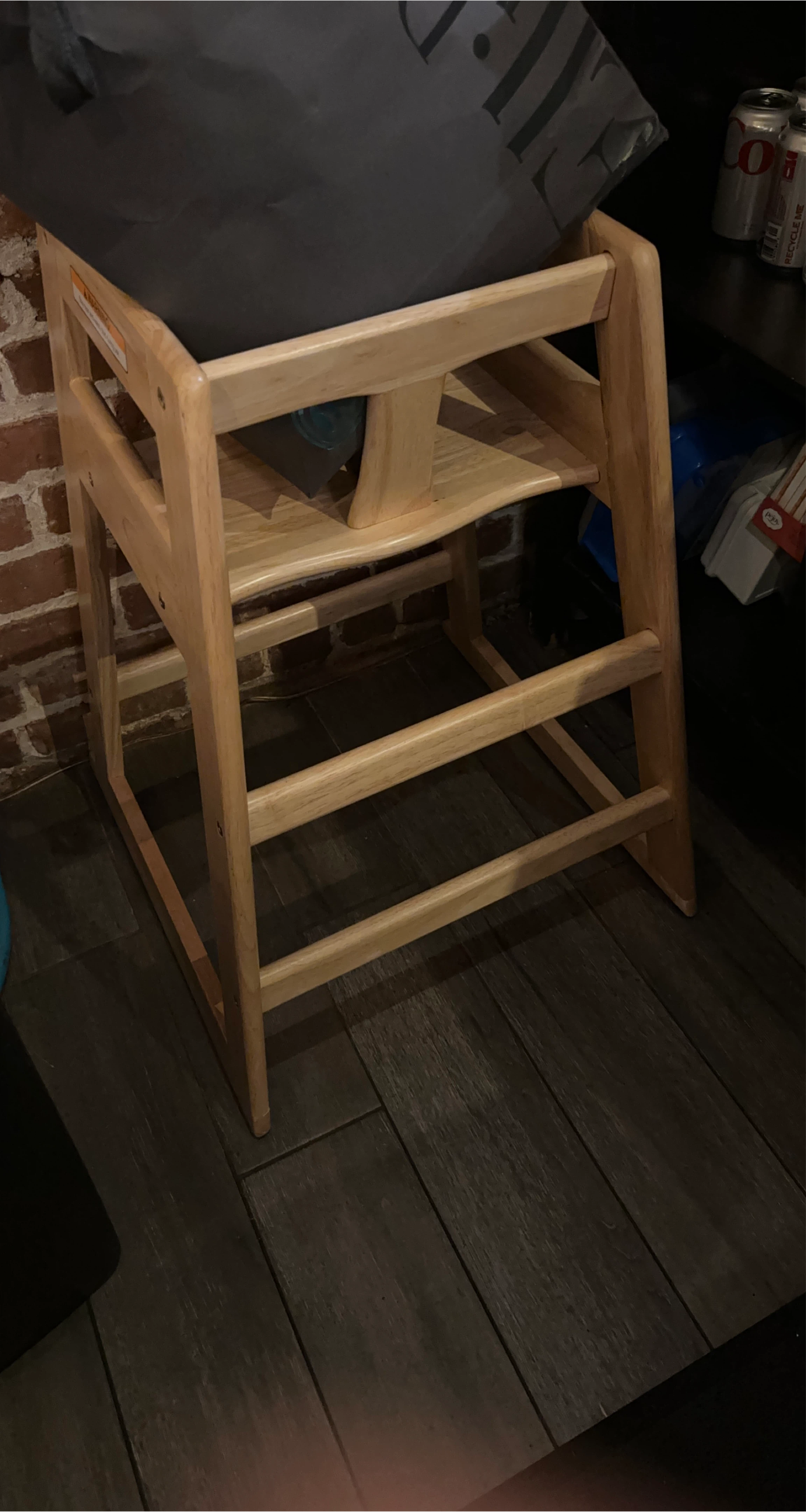 Selling a wooden high chair in used 1 time fairly new condition. It's sturdy and perfect for meal times! It has a classic design that fits well in any home