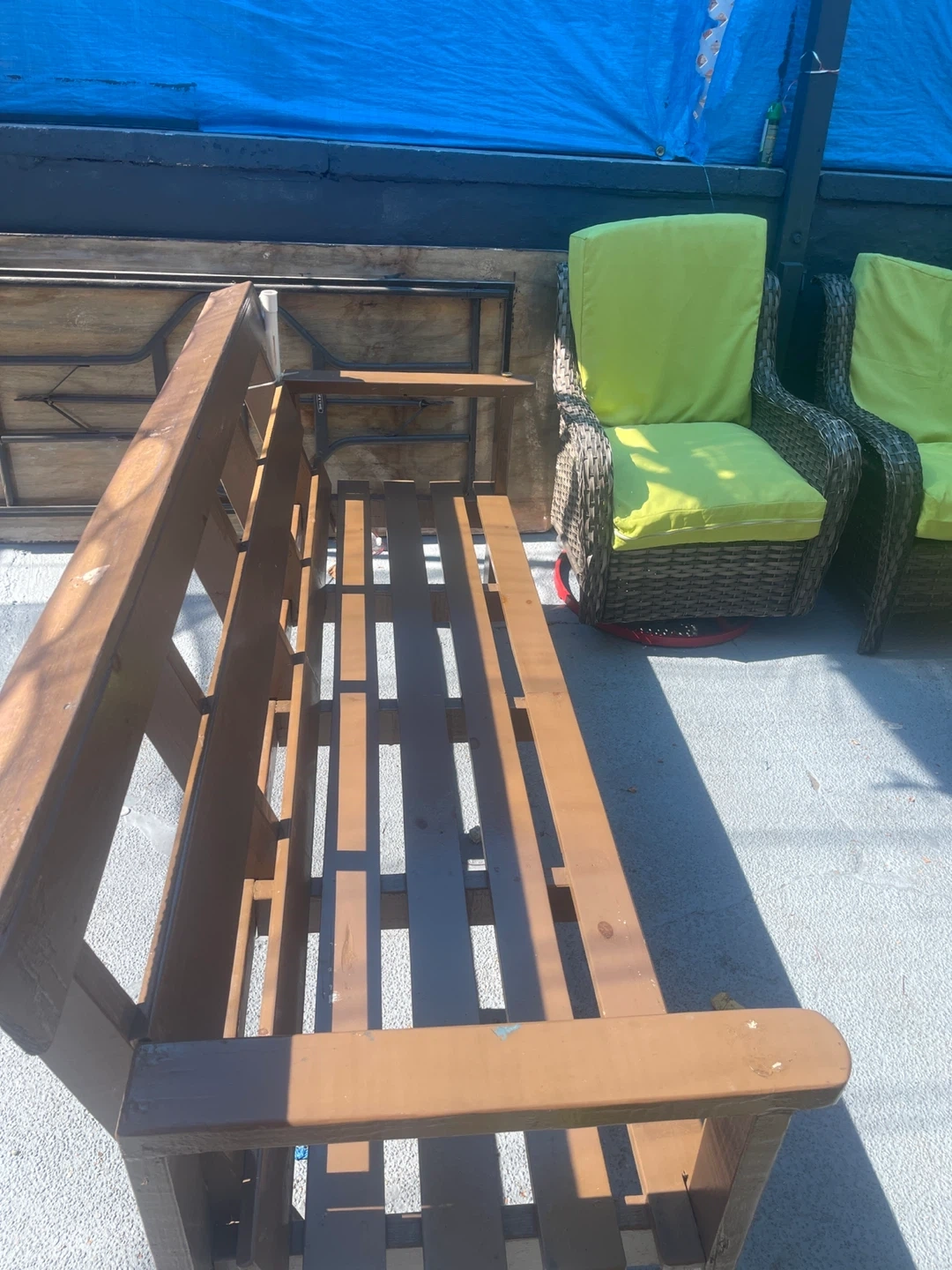 Selling a wooden outdoor bench. It's perfect for a patio or garden setting. It's a great place to relax and enjoy the outdoors , any color available.