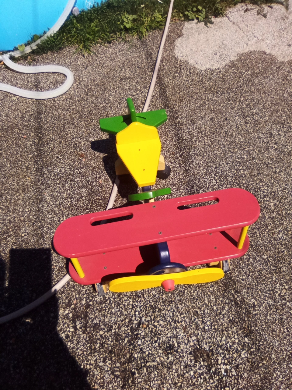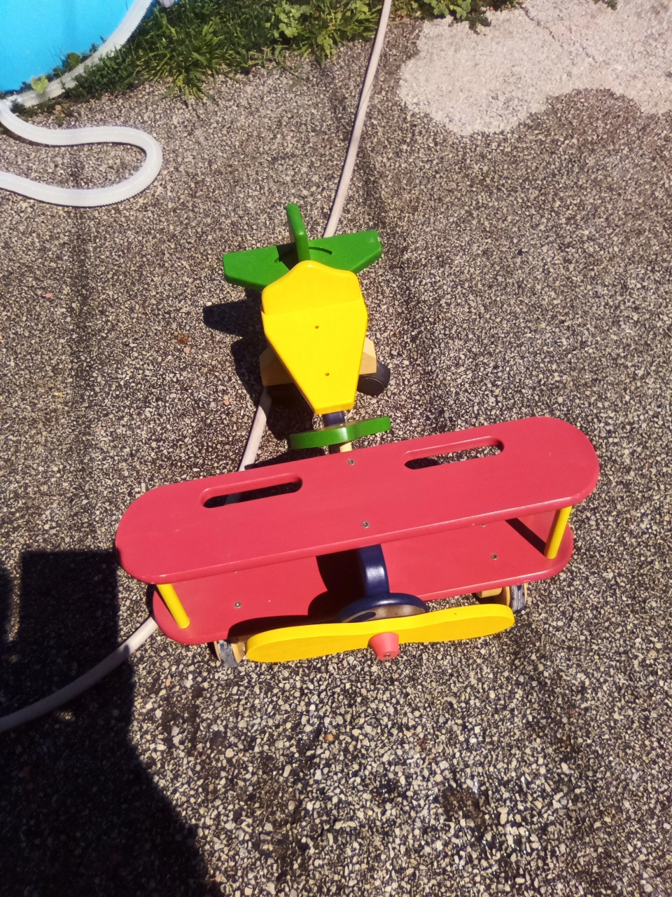 Selling a colorful wooden toy airplane! It's in great shape and ready for a new home. Perfect for kids who love to play and imagine adventures