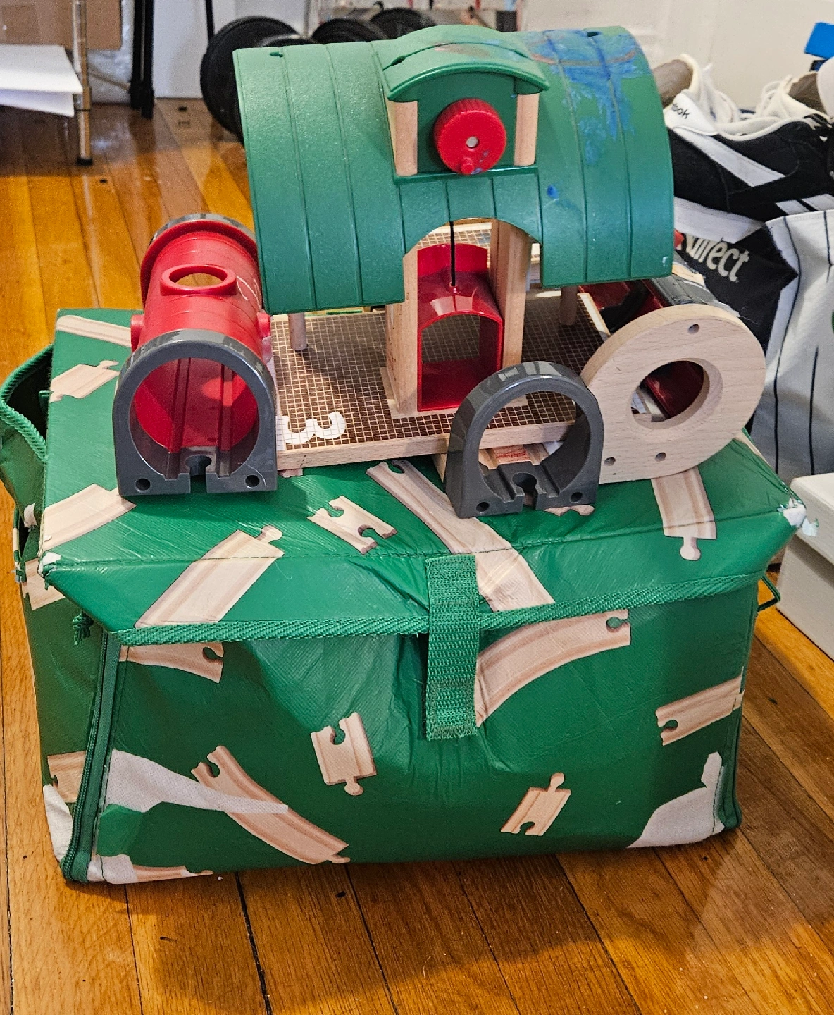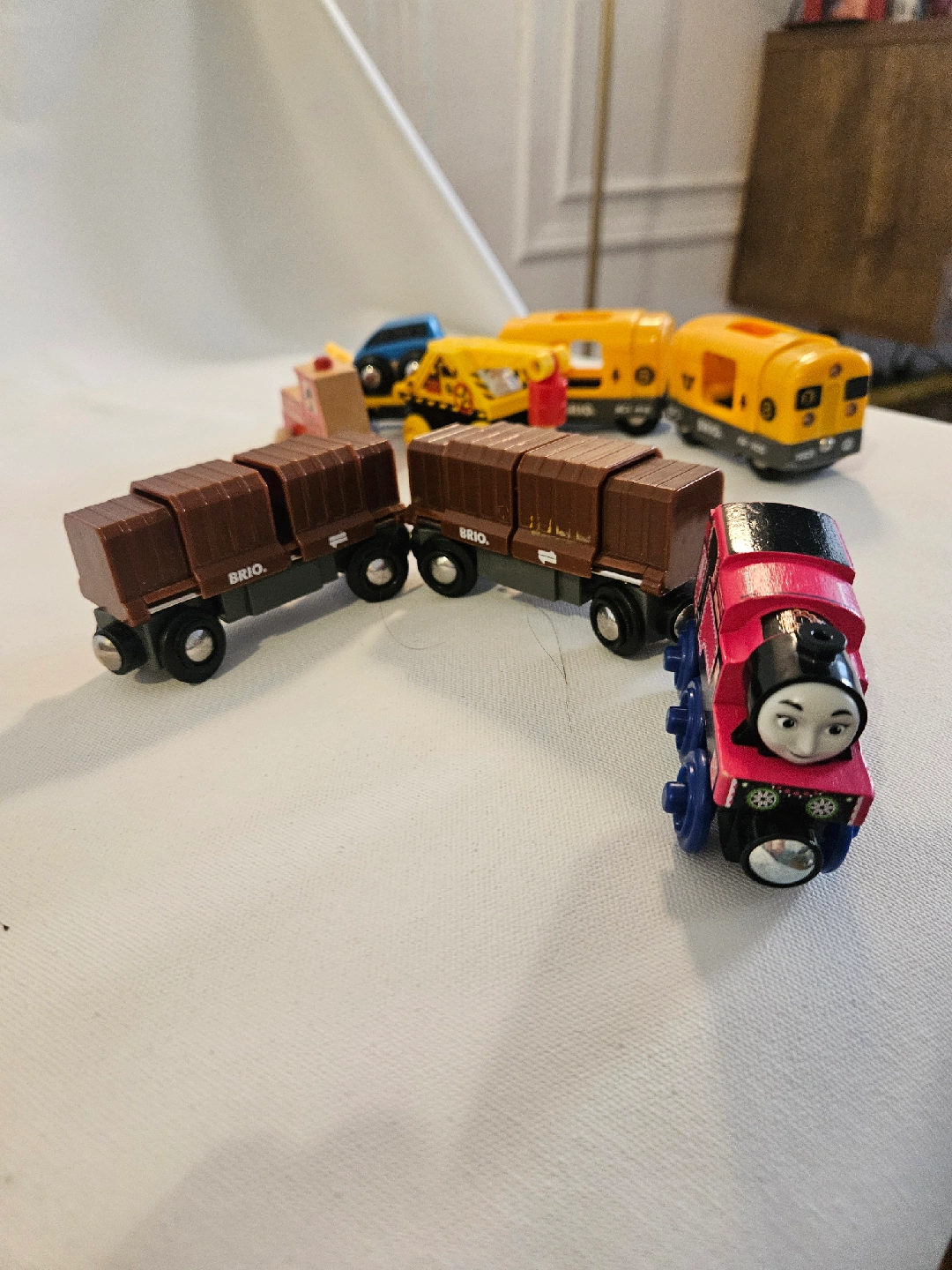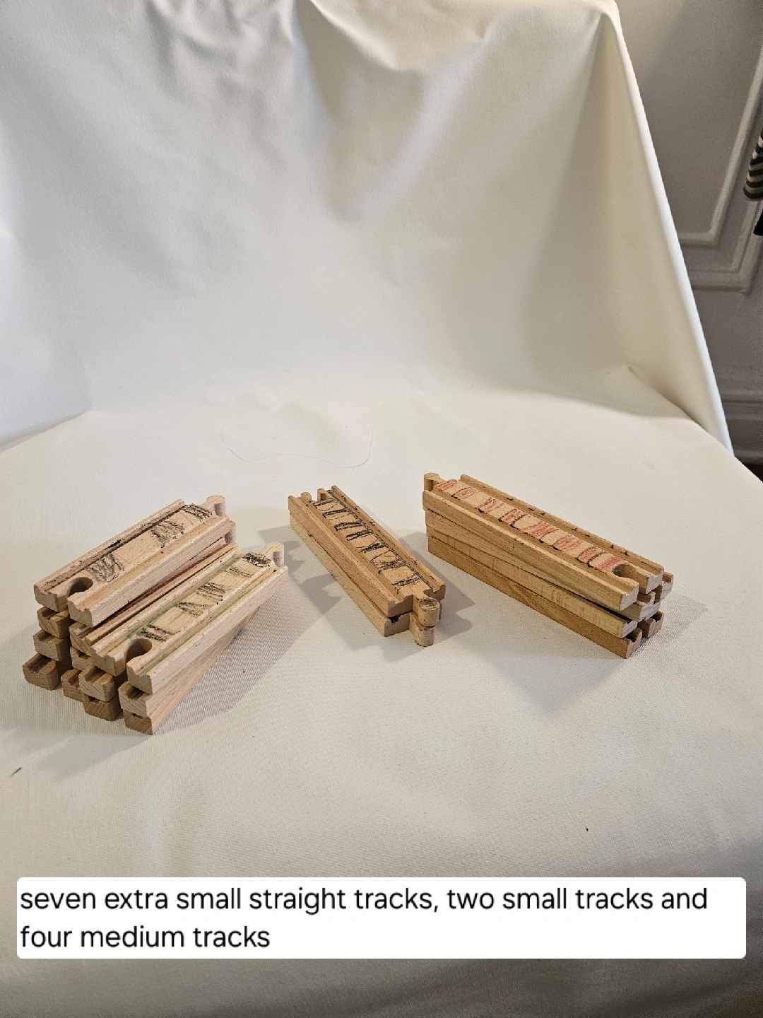 Selling a set of wooden train tracks! Includes 25 long curve tracks, 20 small curve tracks, 4 small uphill tracks, 2 large uphill tracks, 5 extra large straight tracks, 2 large tracks, 3 mini tracks, 2 double inward connection mini tracks and 3 double outward connection mini tracks, 7 extra small straight tracks, 2 small tracks and 4 medium tracks, also includes many trains, funtioning drawbridge, station with elevator and much more from brio and other brands
