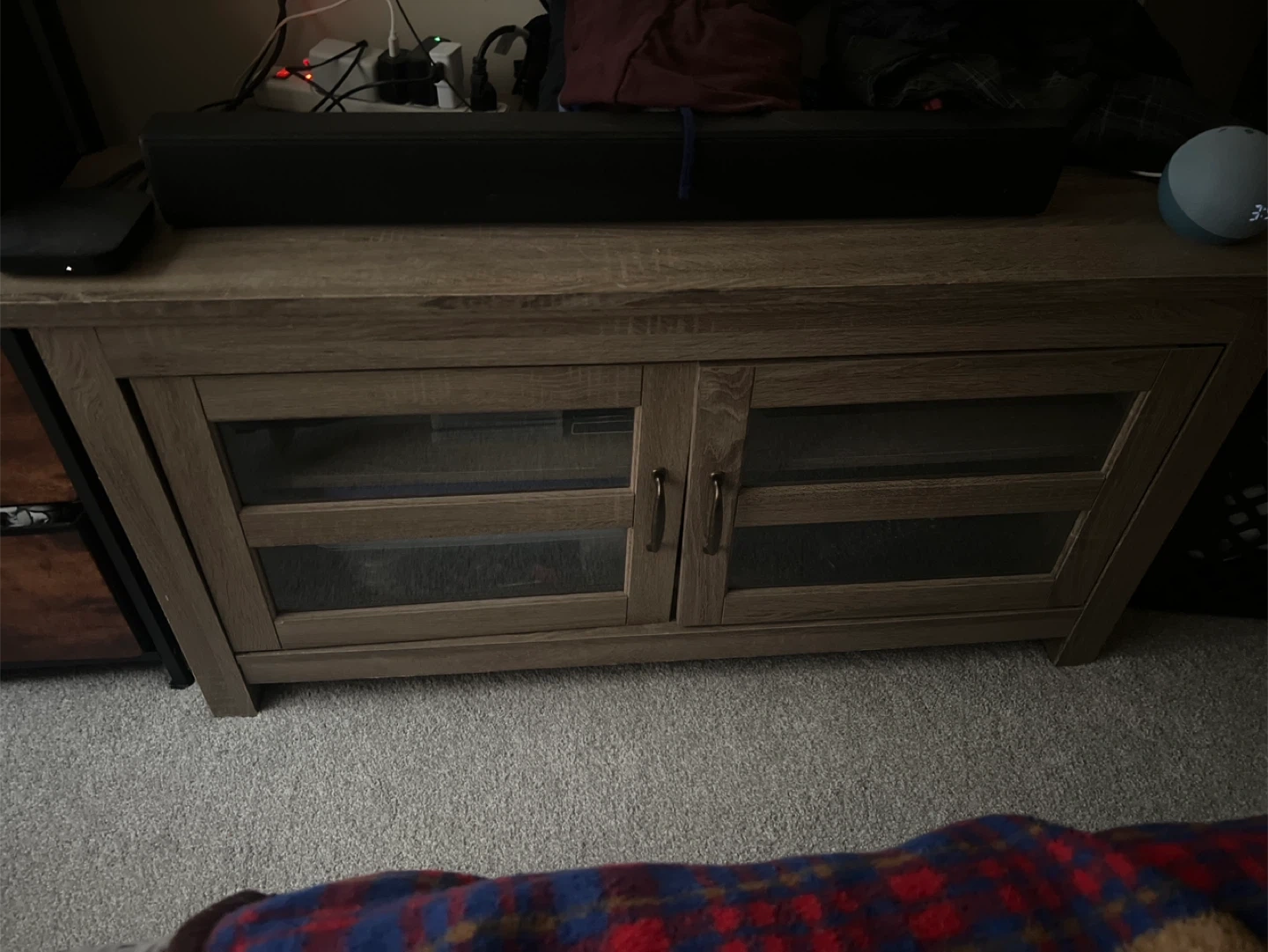 10Selling a wooden TV stand with glass doors! It's perfect for storing your media devices and keeping your living room organized. The stand has a nice, neutral wood finish that would look great in any home. It's in good condition and ready for a new home!