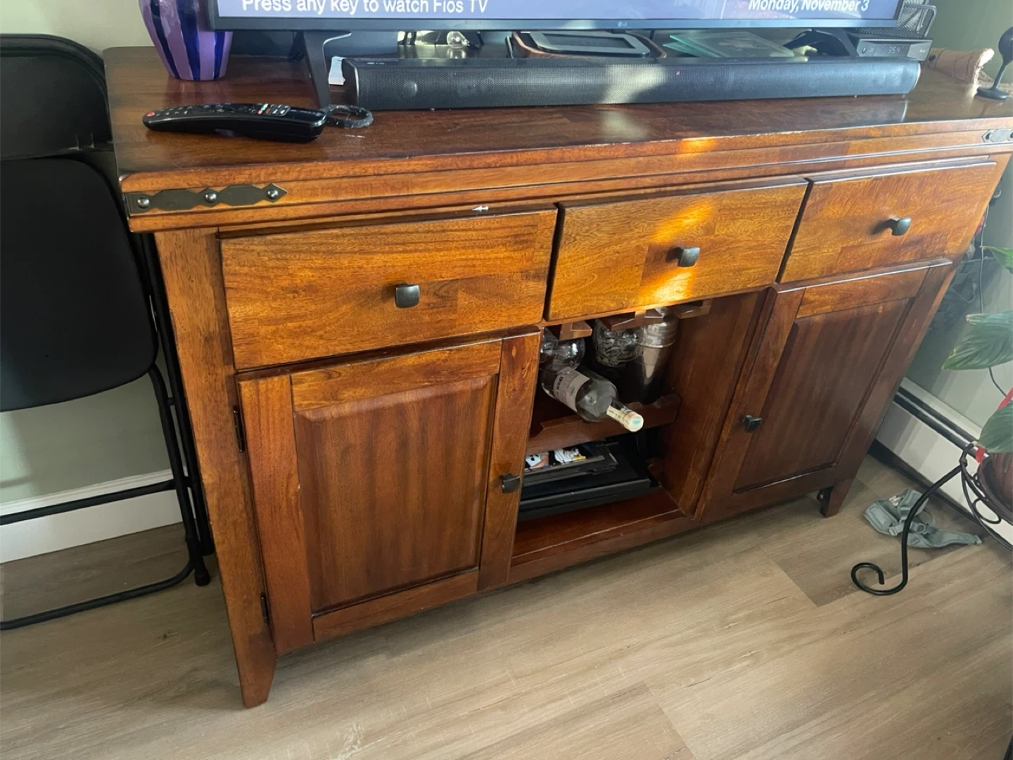 10Selling a beautiful wooden TV stand! It features drawers and cabinet space for storage. Perfect for any living room or entertainment area. It's in great condition and ready for a new home