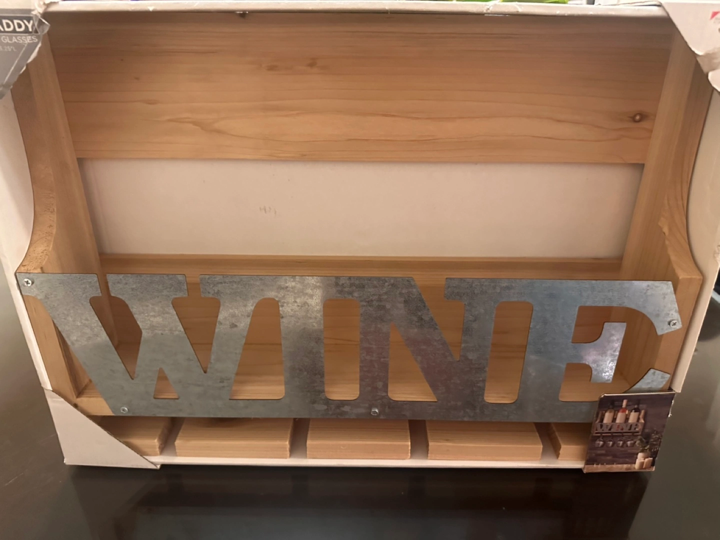 71New wooden wine rack. Holds multiple bottles. Features a metal WINE sign. Perfect for wine lovers.