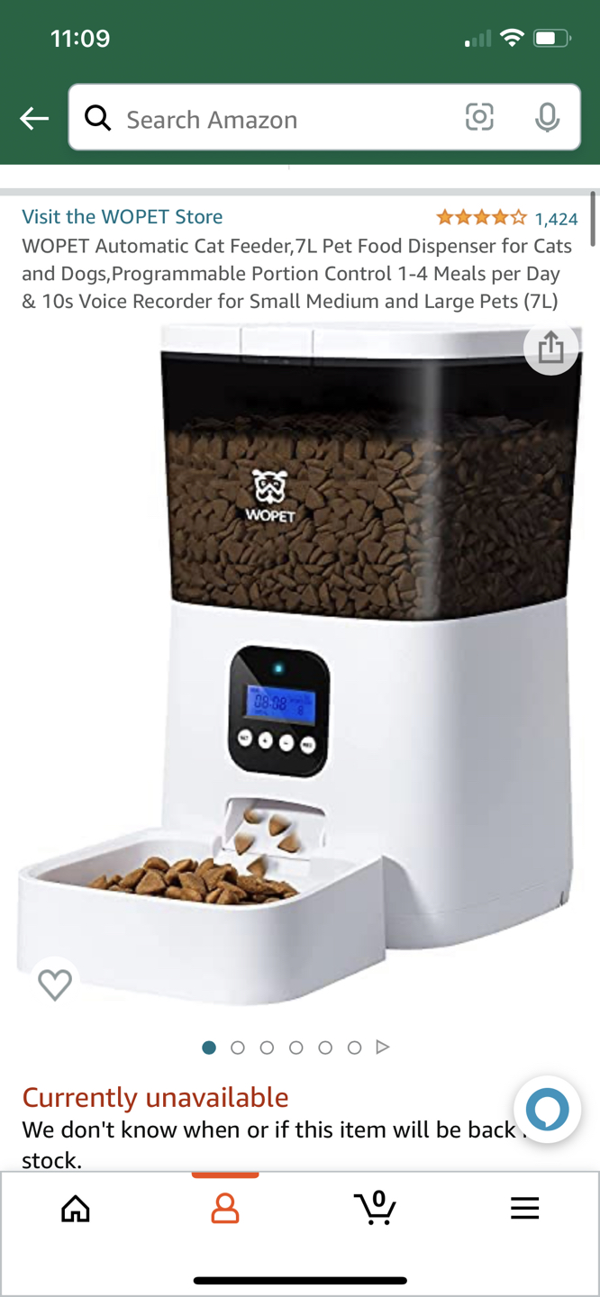 WOPET Smart Pet Feeder 6L WiFi App Control – Used