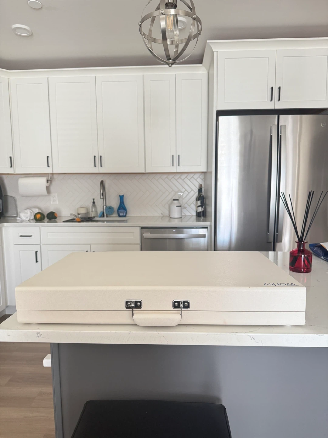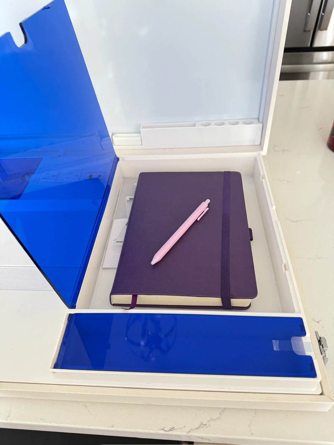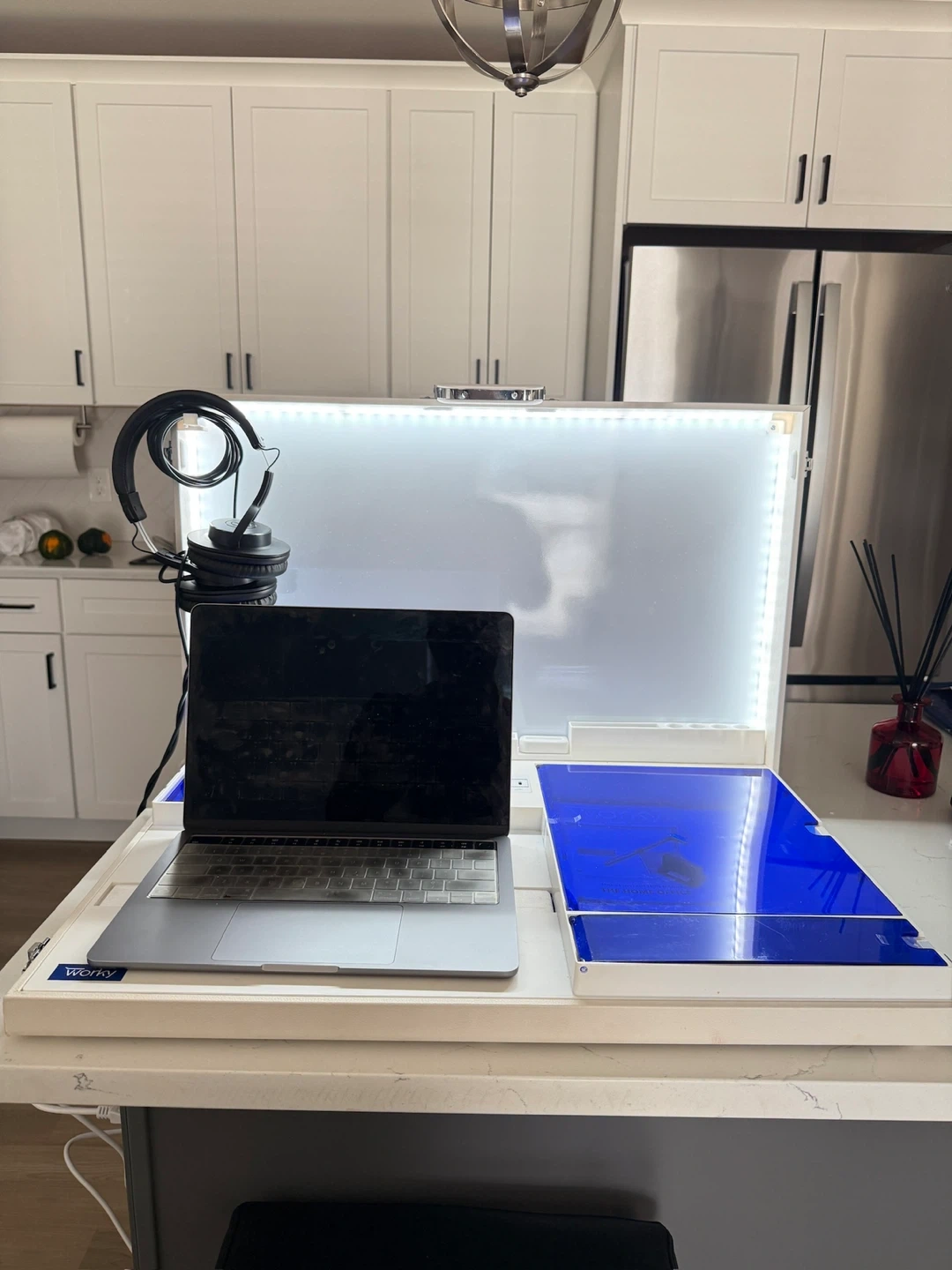 15Selling a Worky portable workstation desk! It's in great condition and perfect for working from anywhere. It has built-in power outlets and a USB charging port, and headset hook making it super convenient to stay organized. It comes with a built-in whiteboard and organization for your notebooks. You can close it up at the end of the day and put it away. NOTE: - laptop and headset not included - minor scratches