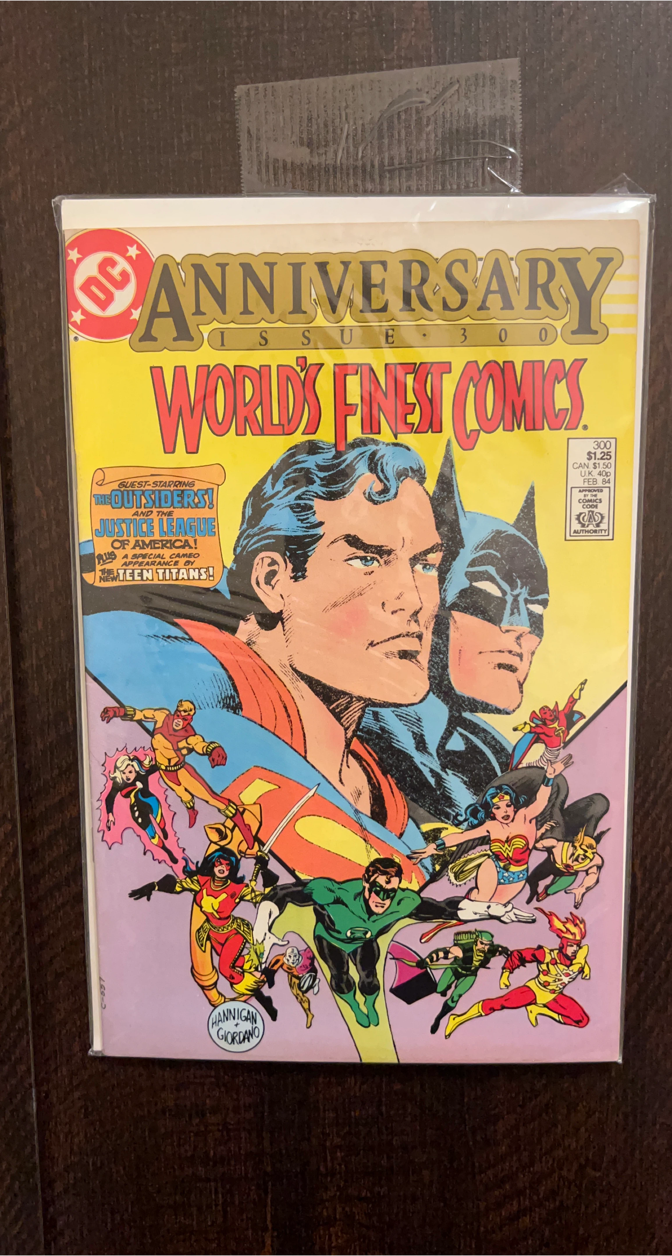 65Selling World's Finest Comics Anniversary Issue 300. It features The Outsiders and the Justice League of America! Also includes a special cameo appearance by the New Teen Titans! Approved by the Comics Code Authority
