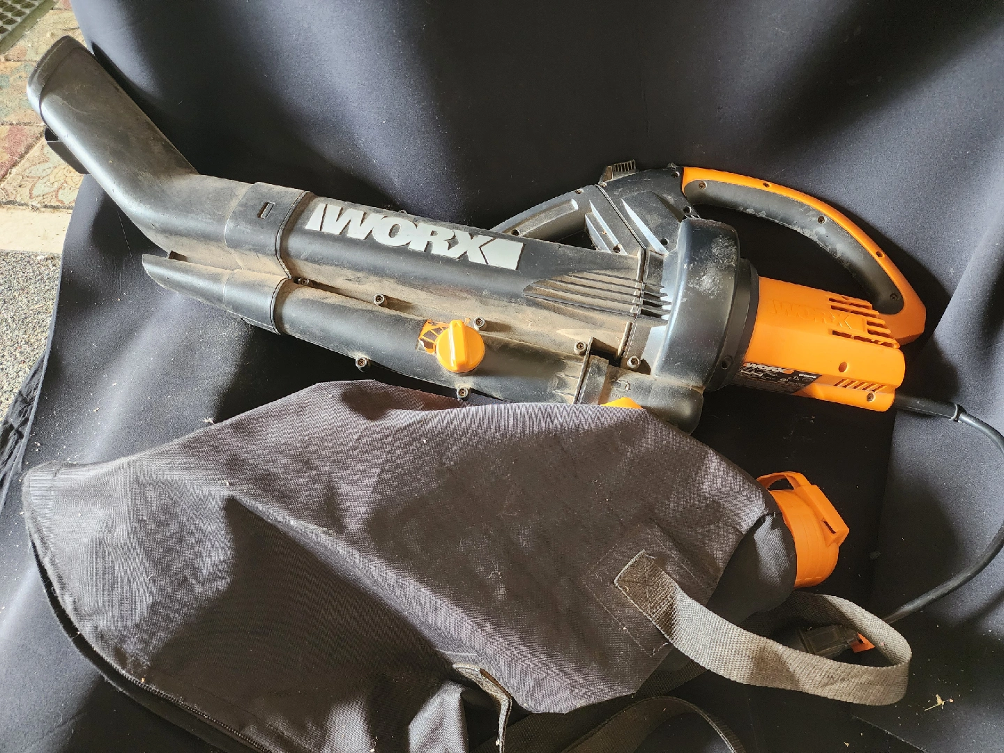 Selling a WORX WG505 Electric Trivac Blower/Mulcher/Vacuum. It can blow at 210 mph, mulch, and vacuum up leaves and debris. It features a 12 amp motor and 350 CFM. Great for yard work!
