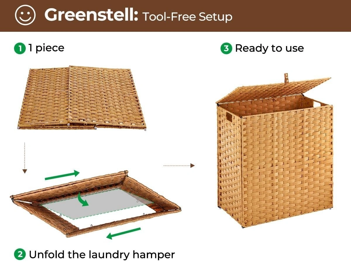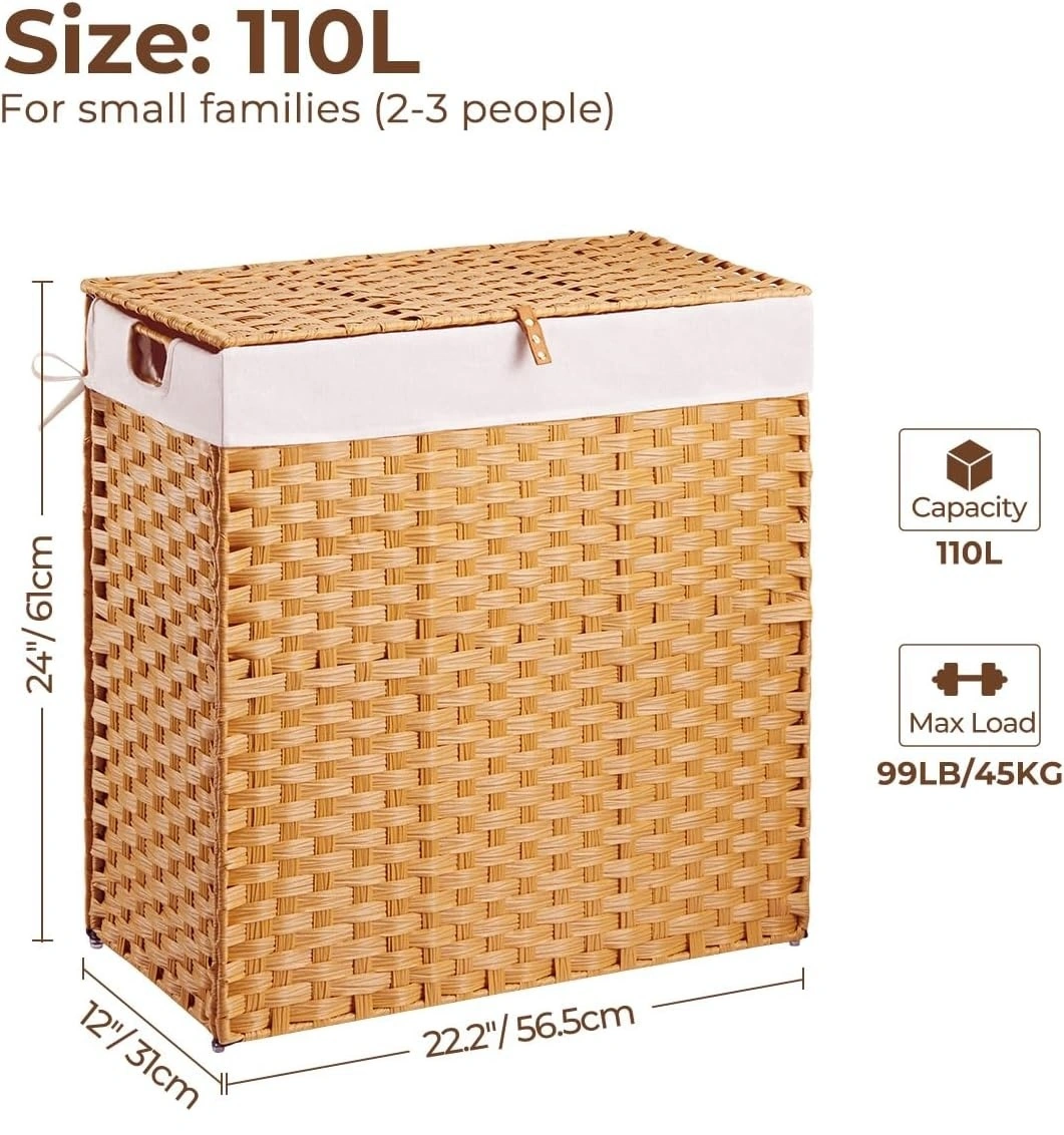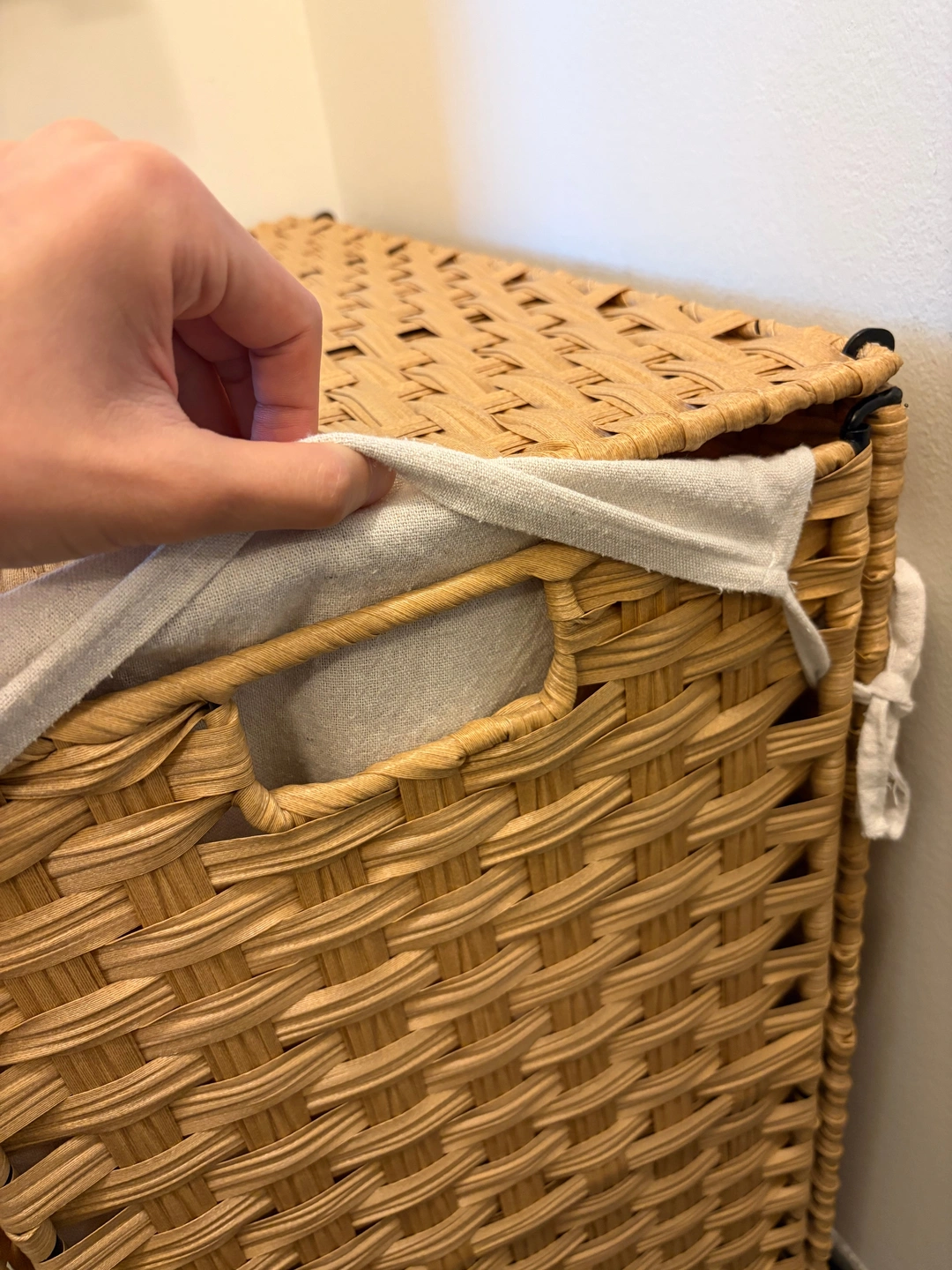 55Woven laundry basket with 2 removable liner bags and sturdy handles. Neutral two-tone design (white and light brown) that fits any style. Folds down flat for easy pickup or storage. Great for bedroom, bathroom, or laundry room. Size: 22.2" W × 12" D × 24" H (56.5 × 31 × 61 cm) Capacity: 110L – ideal for small families (2–3 people). Max Load: 99 lbs / 45 kg. Bonus: Perfect for sorting white and colored laundry separately with two liners. Condition: Gently used, less than 2 years old. Liners have been freshly washed and are ready to use. Basket is clean and in excellent shape — no stains, tears, or damage. Original Price: $50. Asking Price: $25 OBO Pickup: Local pickup only in Lake View East / Wrigleyville. Lightweight and easy to carry; folds flat to fit easily in a car. Payment: Cash or Venmo
