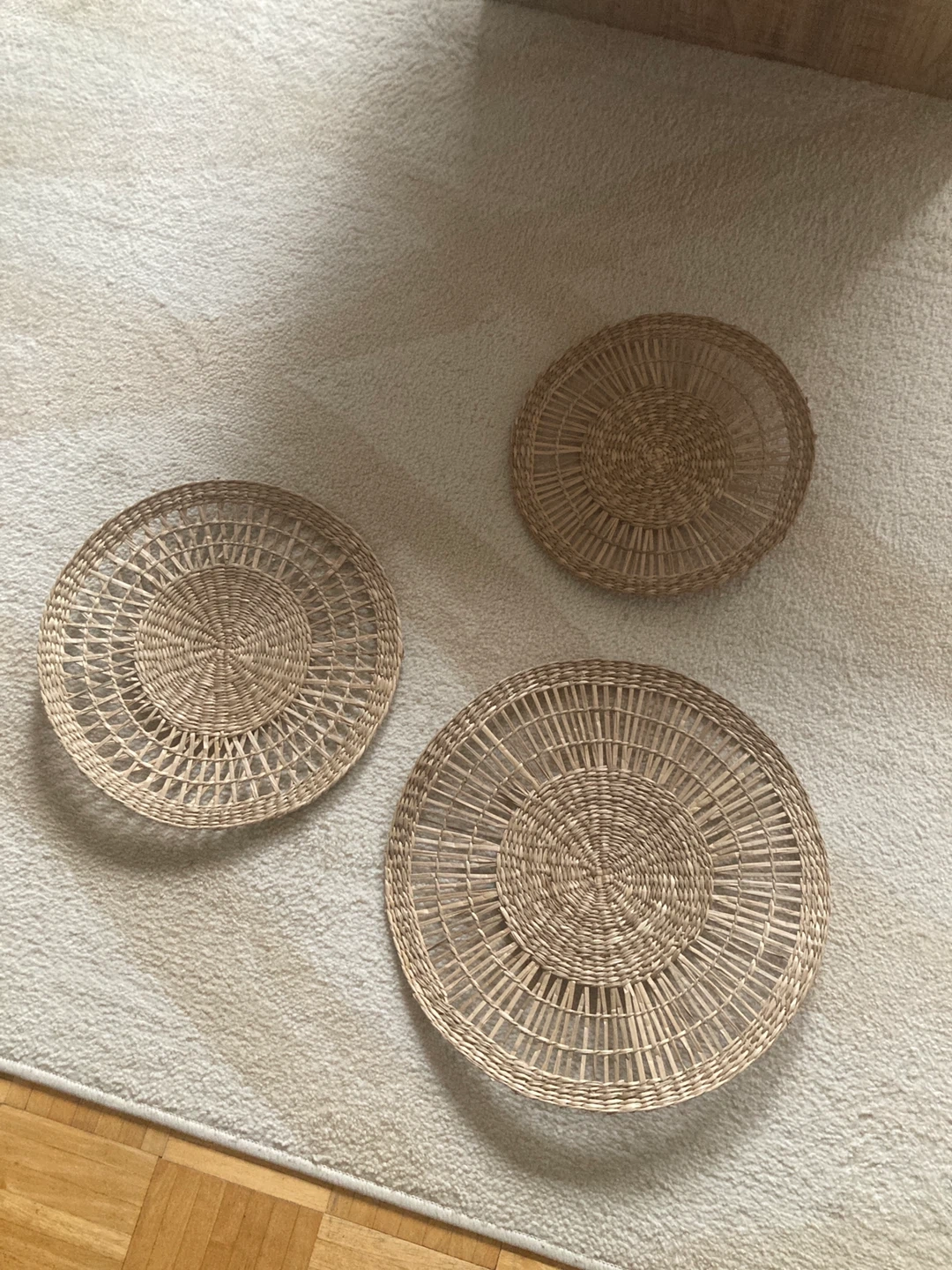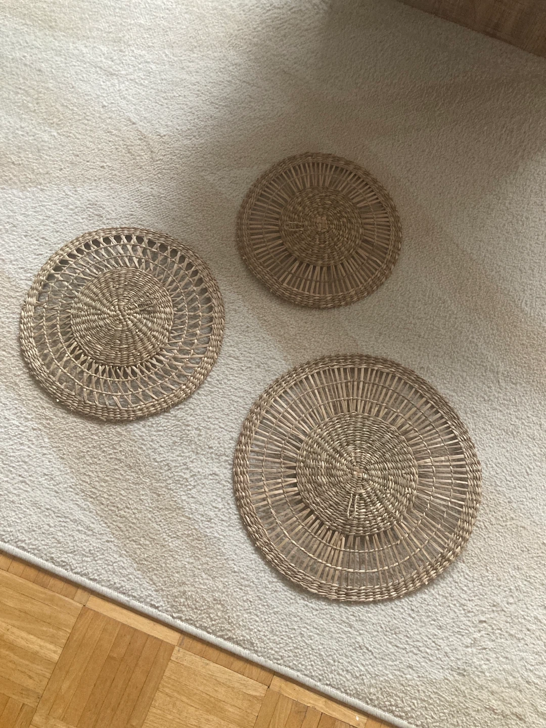 Selling a set of three woven wall decor pieces from IKEA! These are perfect for adding a natural, textured touch to any room. Add texture to an accent wall. They're in great condition (like new) and ready to hang. Please let me know if you have any questions or would like to make an offer. I have so much home decor that needs to go by 10/20. Located in Midtown East near Grand Central (4, 5, 6, and 7 subway lines). I’m open to offers!
