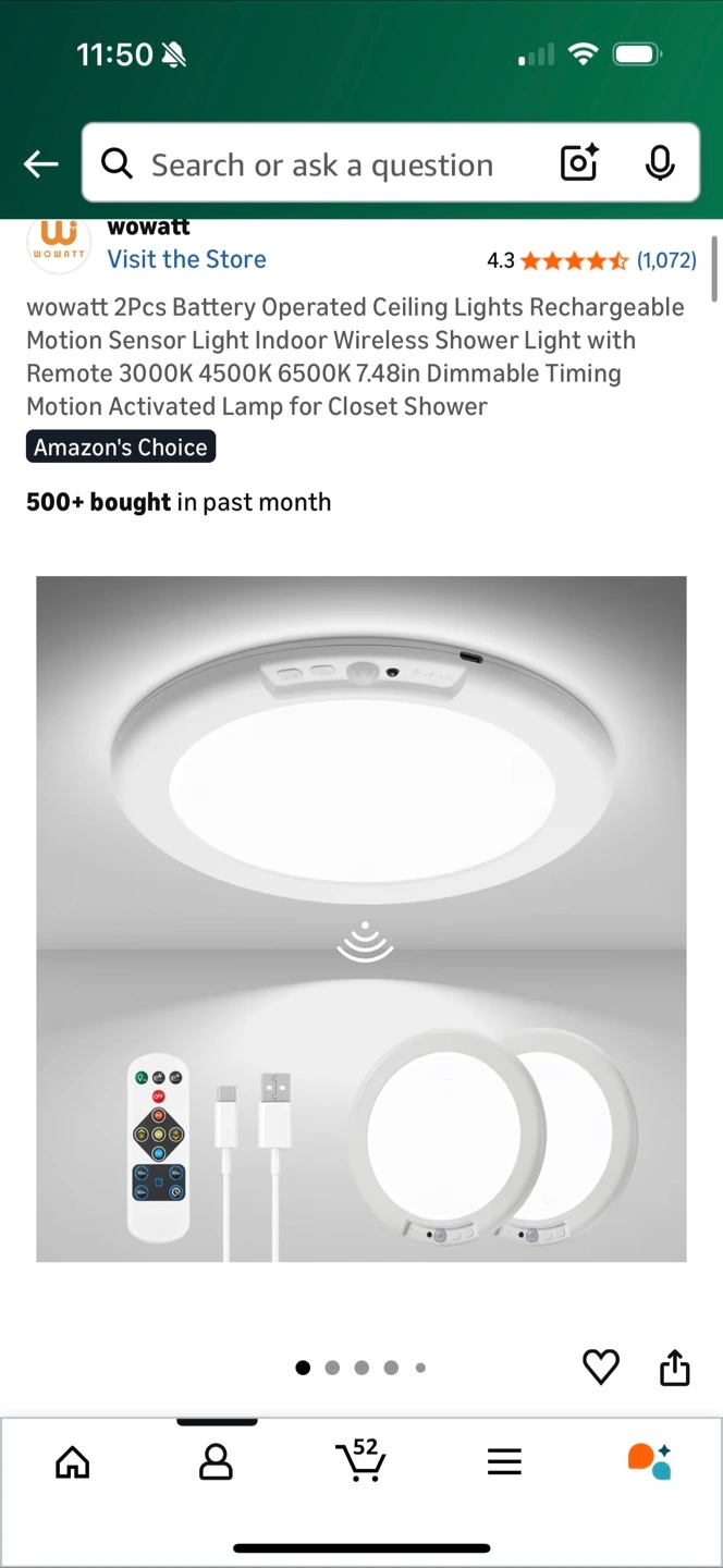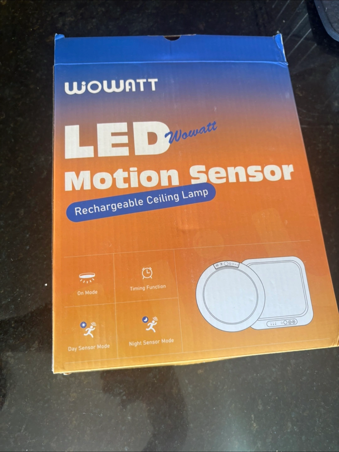 10Selling a WOWATT LED motion sensor rechargeable ceiling lamp! It's a great indoor wireless shower light that comes with a remote. It has multiple settings like 3000K, 4500K, and 6500K, and is dimmable at 7.48 inches. Also included is the box and the remote!